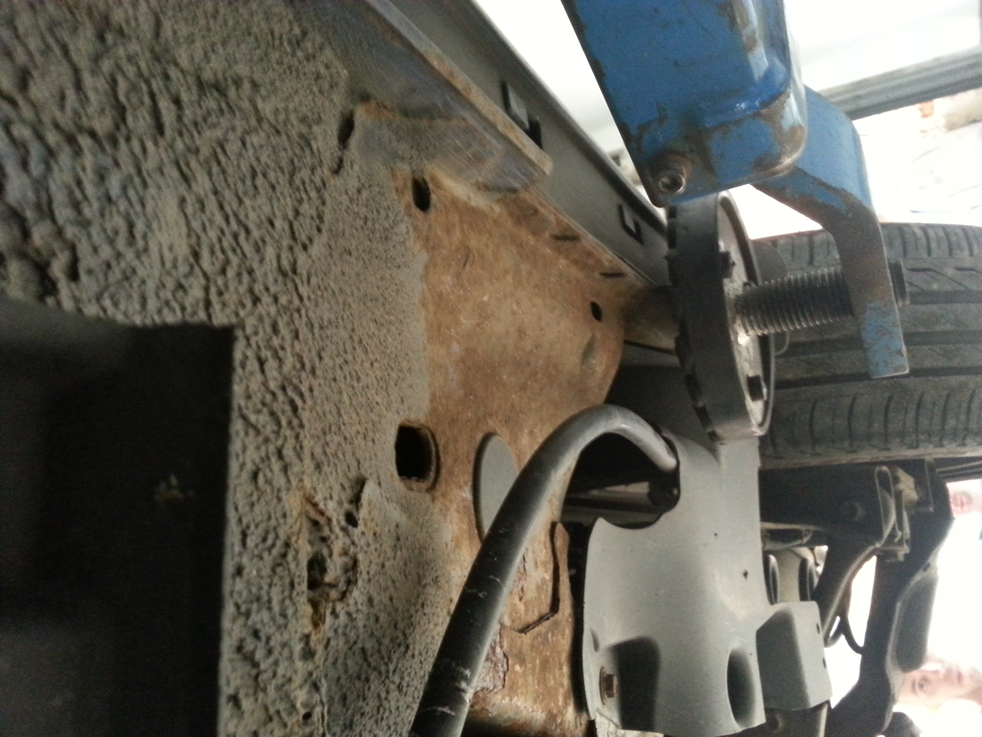 Tak na szybko w temacie korozji – jestem właśnie po wymianie błotników przednich... i zabezpieczaniu progów. Taki widok zastał mnie i blacharza po ściągnięciu uszczelek i błotników.