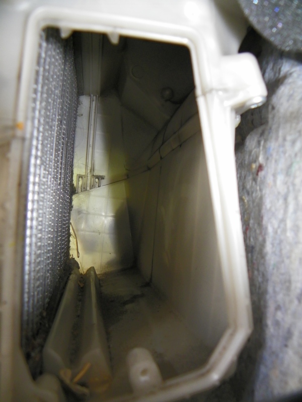 No i po pierwszej wymianie. Schowek wyjmowałem bo i tak wymieniałem żarówkę i uważam, że sporo ułatwia to wgląd i dostęp. Byłem zmuszony wypiąć 4 wtyczki ze skrzynki (po lewej) gdyż miałem tak zapieczone śruby od metalowego mocowania skrzynki iż nie szło ich ruszyć. Praktycznie się poddałem... pomógł oddrdzewiacz i półmetrowa dźwignia na kluczu nasadowym. Nakrętki praktycznie były przyspawane, co mnie zupełenie nie zdziwiło jak zobaczyłem stare filtry. Chyba nikt ich nigdy nie wymieniał.