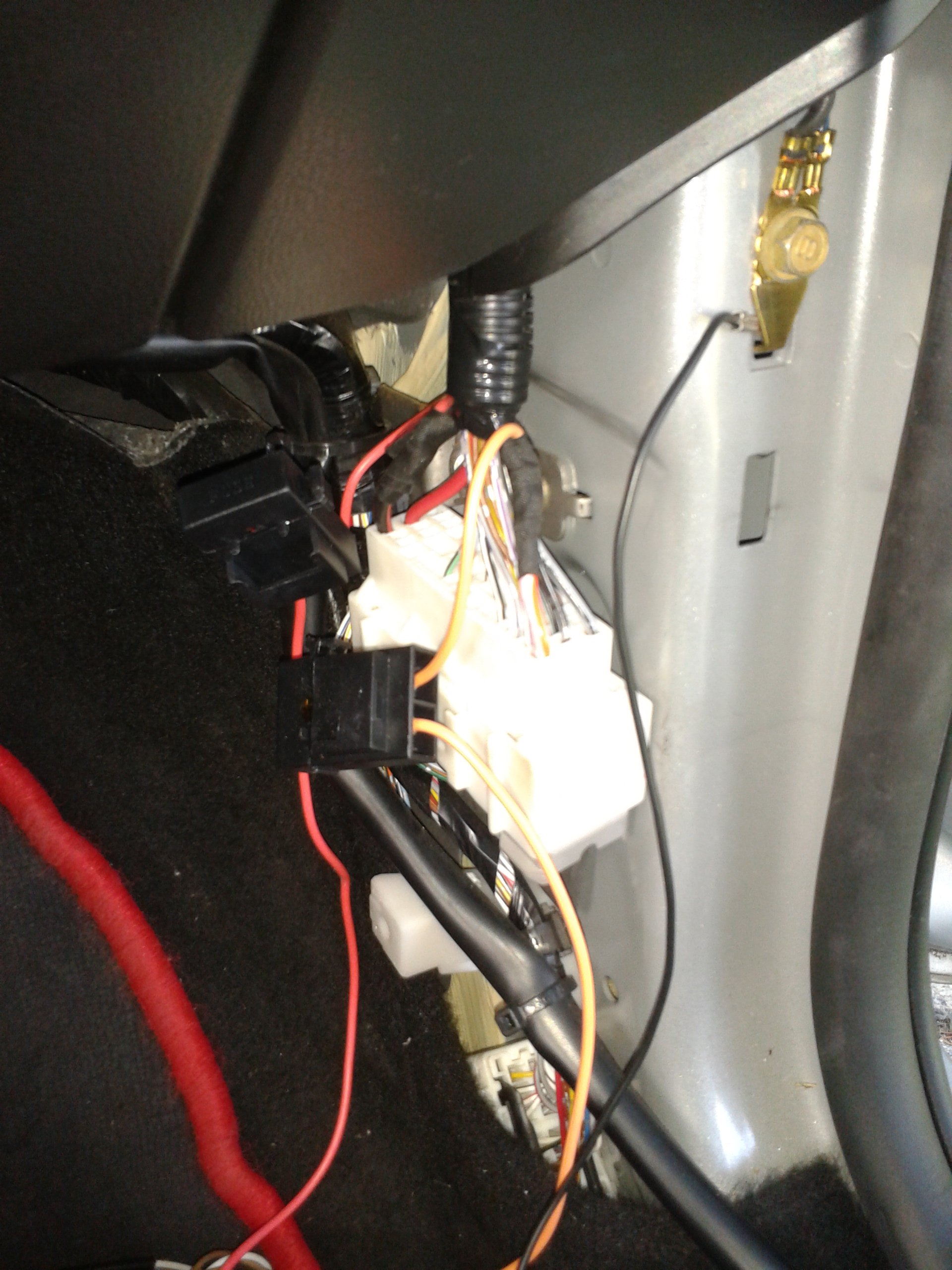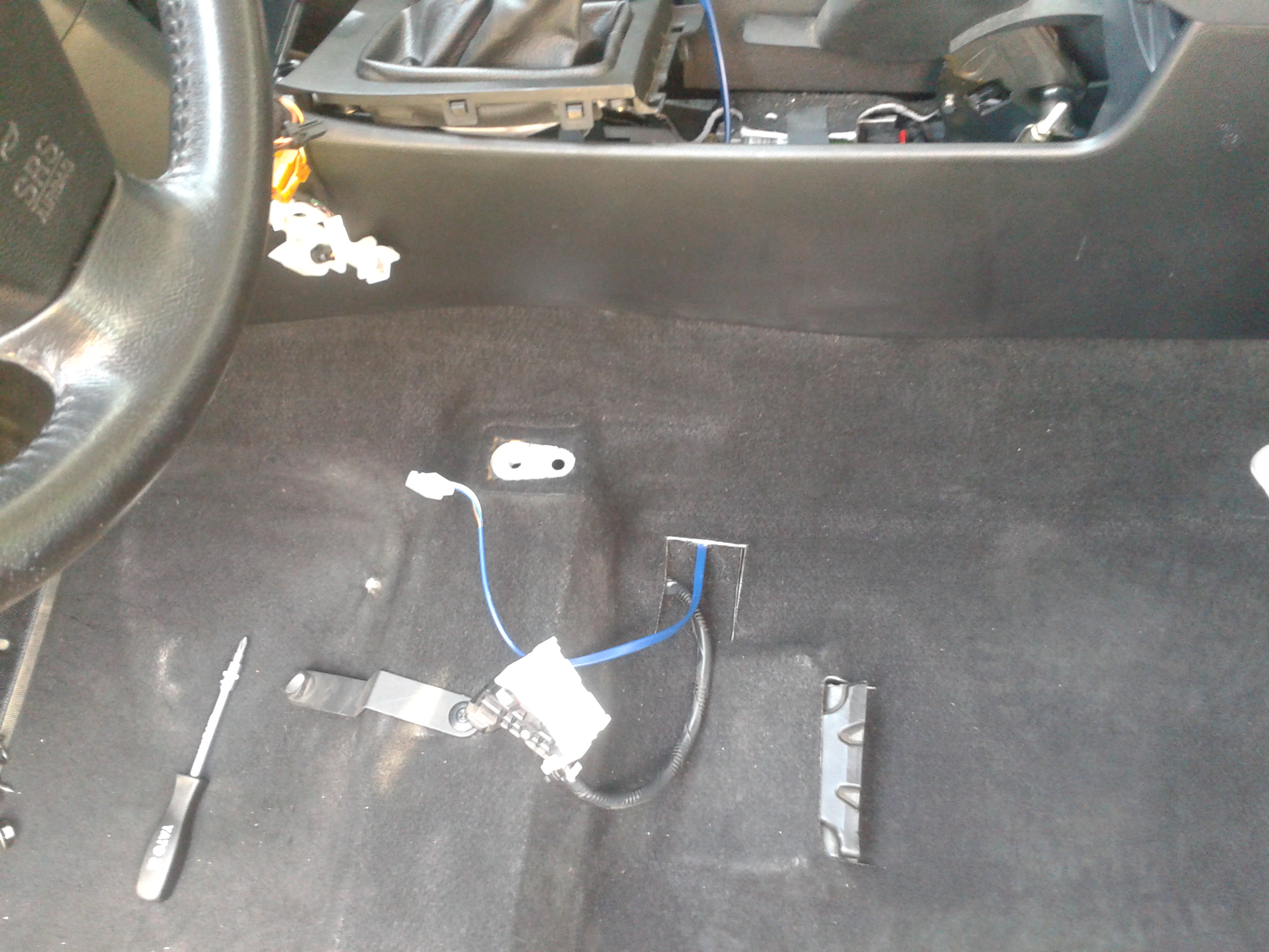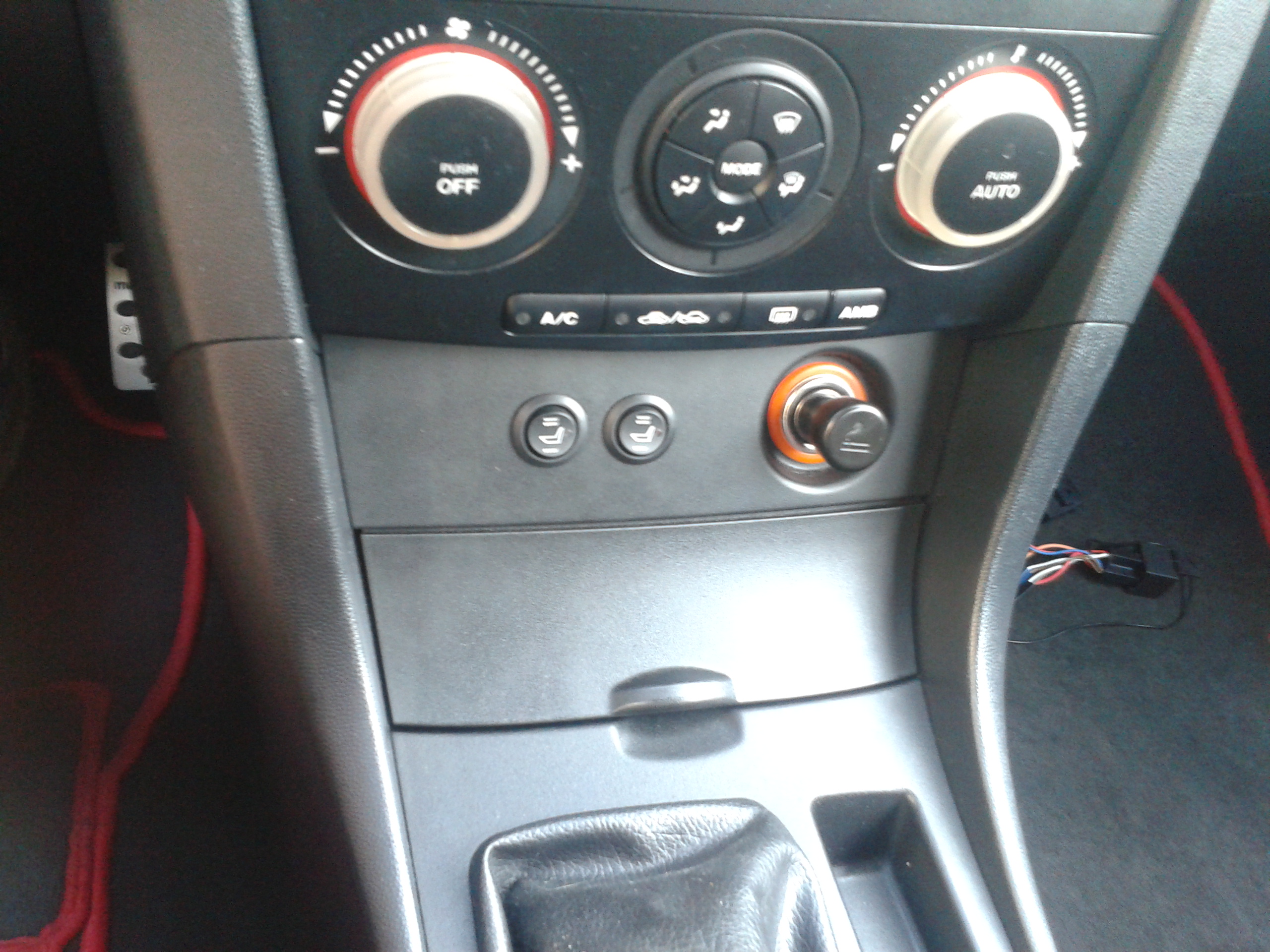 Ale ja miałem na myśli otwory do montażu przy zapalniczce... Kable pociągnąłem tak jak ty pod tapicerką podłogi.
