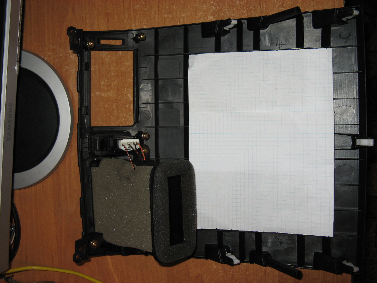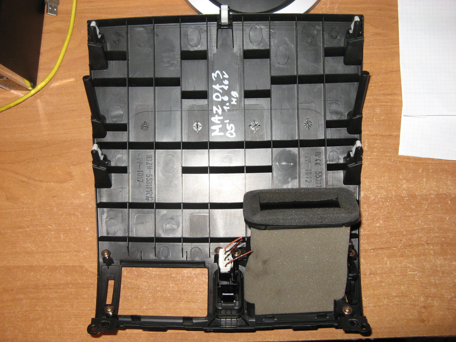 Tak wygląda panel... porównałem spód ze zdjęciami jakie udało mi się znaleźć w sieci i wychodzi na to że dziura zostanie wycięta w miejscu zasłoniętym przez kartki, odkręciłem jeden nawiew dla celów poglądowych.