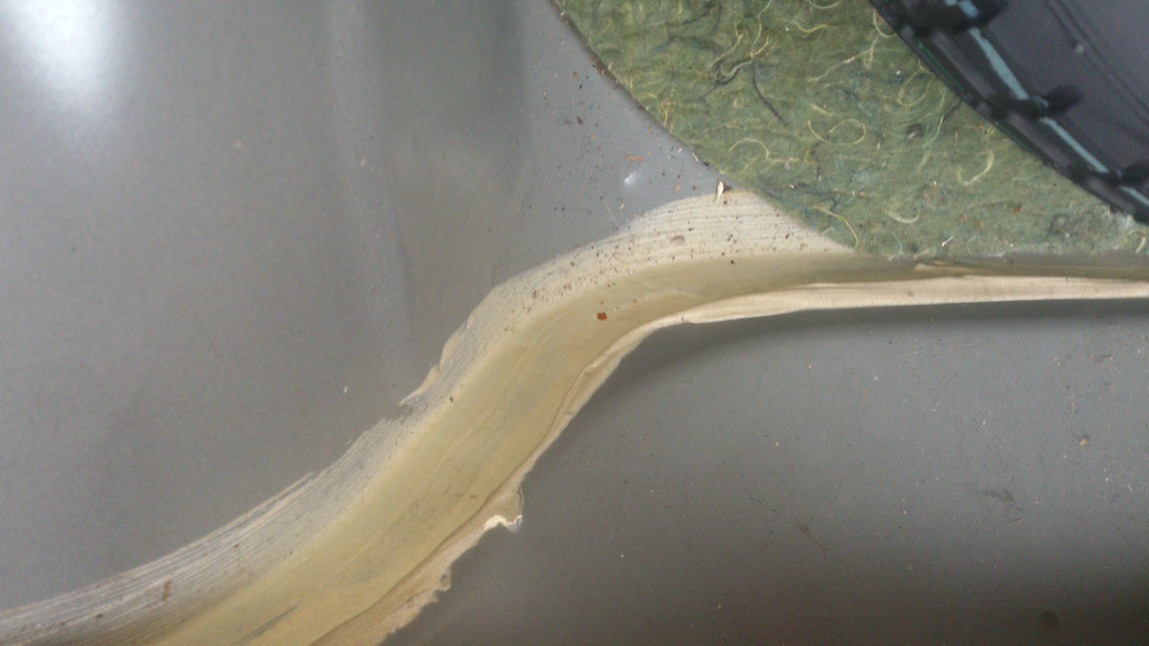 Fabryczna masa uszczelniająca, na łączeniach blach.