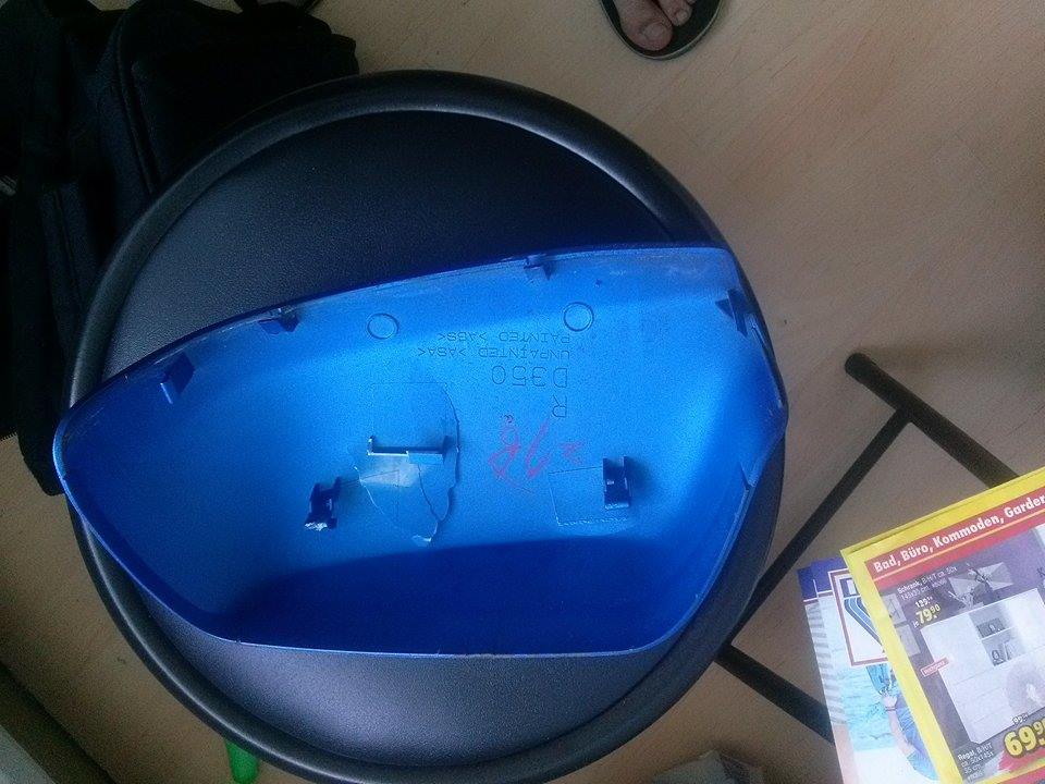 witam, prosze o szybką pomoc. ktoś rozwalił mi plastik lusterka od przodu, wyłamanie wielkości 2 palców (prawdopodobnie idiota chciał złożyć lusterko i pchnął kciukiem i plastik sie złamał i wpadł do środka.