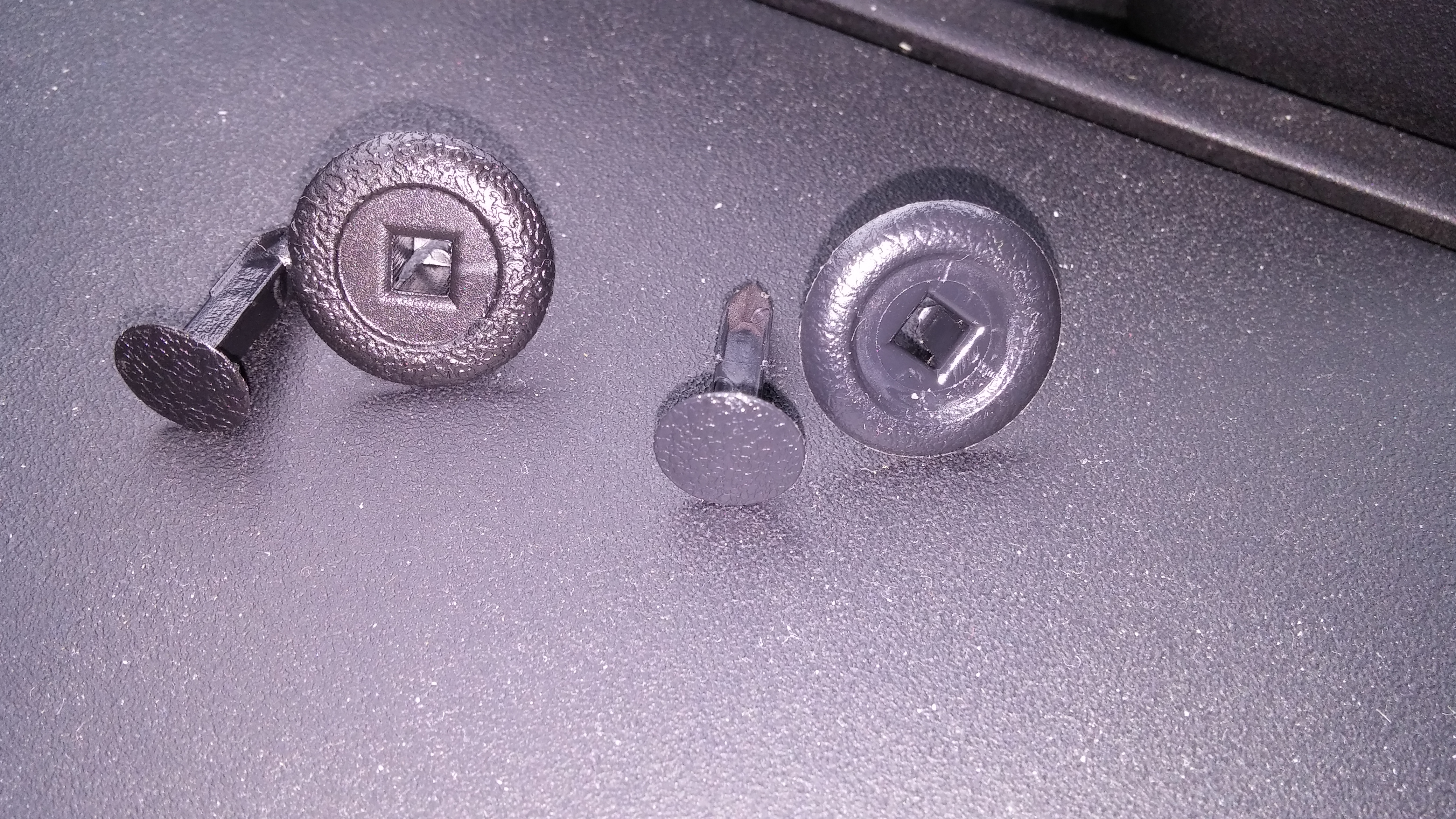 Zamienniki spinek ZJ0113209 pasują idealnie. Spinka 80102 (zamiennik do GJ21-68-885B-02) także jest praktycznie identyczna jak oryginał lecz ciemnoszary jest rzeczywiście ciemnoszary. Na fotce (z flashem) jest bardzo widoczna różnica w kolorze, w rzeczywistości praktycznie nie zauważalna, a co najważniejsze w ogóle nie widoczna w miejscu do którego była zakupiona. Ewentualnie można by było psiknąć czarnym sprayem jak by był na zbyciu, ale naprawdę nie widać różnicy w odcieniu.