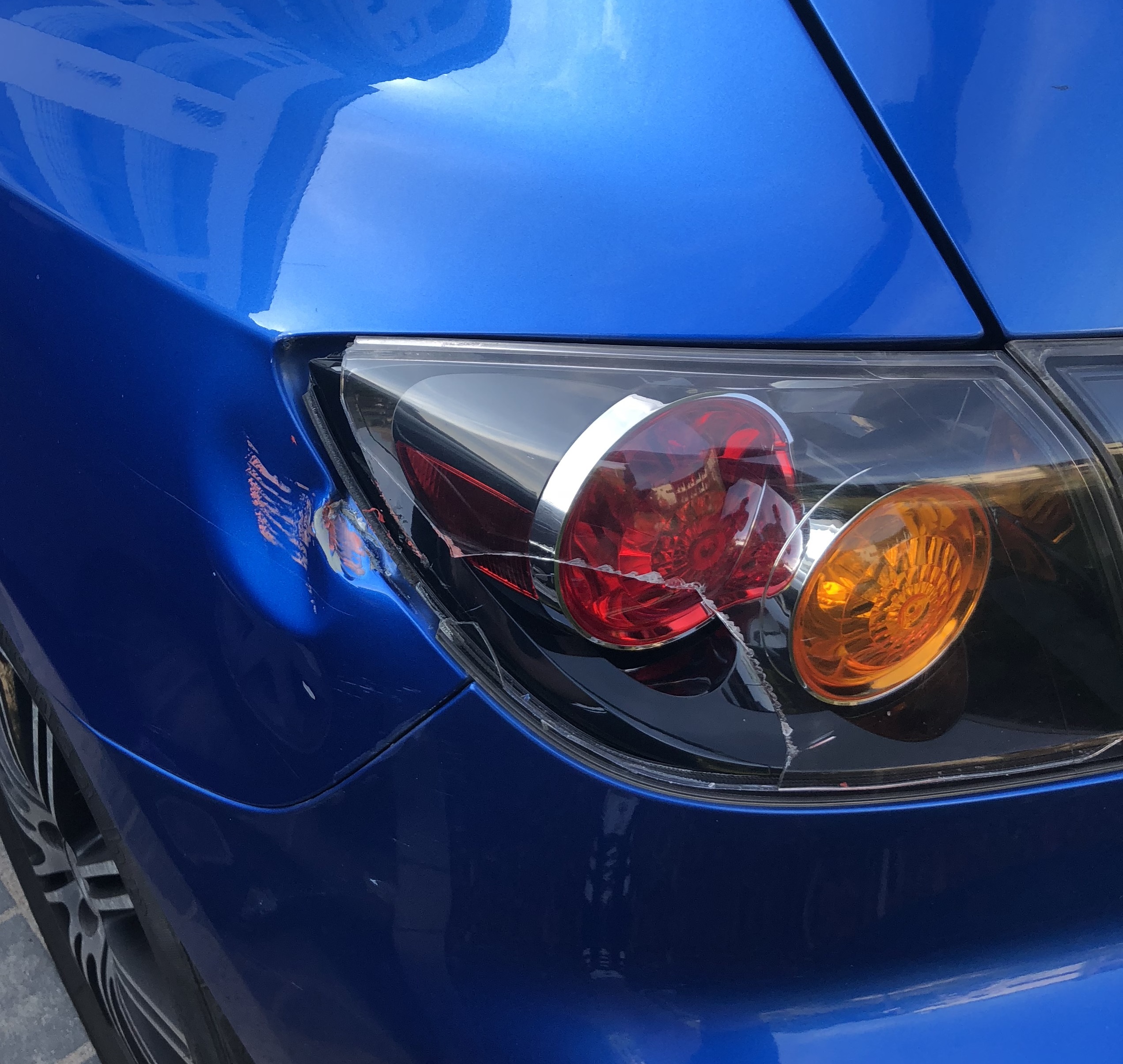 Wczoraj podczas pośpiesznego parkowania wyrósł za mną czerwony hydrant :( . Niestety był twardszy od lampy i jednego z elementów karoserii.