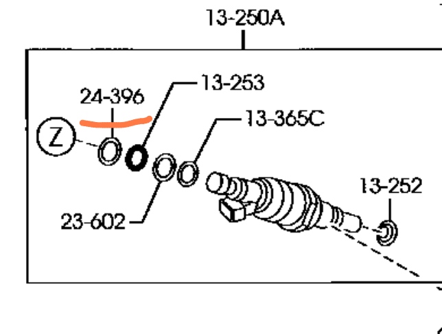 Problem rozwiązany, okazało się że teflonowe podkładki trzymające oring na wtrysku się rozpuściły (na wszystkich 4 wytryskach). Musiało zapchać to wtrysk i go uszkodzić. Sądzę że jest to jakaś usterka fabryczna, zamieszczam zdjęcie poglądowe i nr katalogowy podkładki teflonowej nr l3m8-13-252