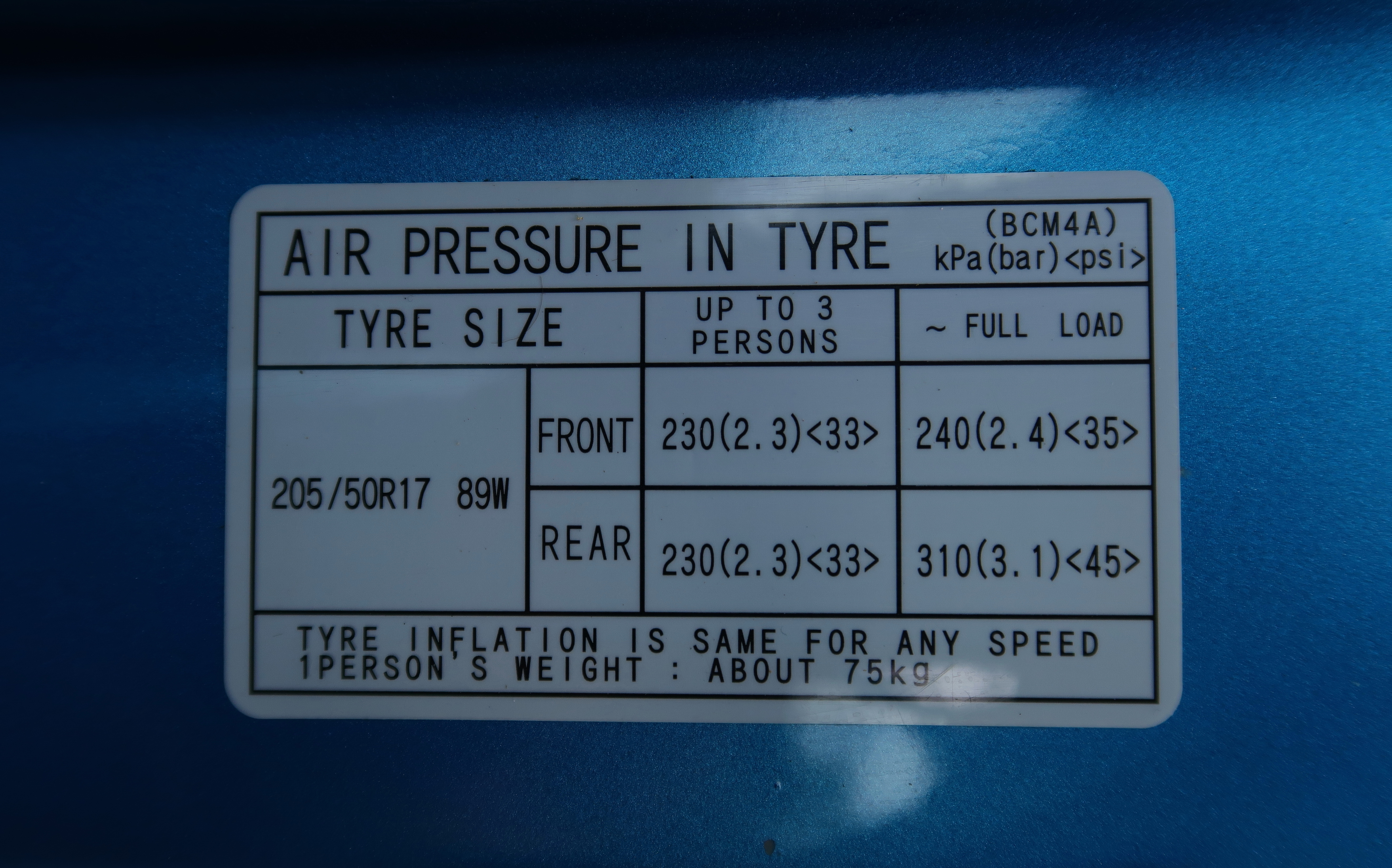 Witam chciałem sobie dziś sprawdzić ciśnienie w oponach i z tabelki wyczytałem to że ma być 2.3. Ale nie oto mi chodzi tylko że tam jest napisane R17. To auto z fabryki wyszło na 17 a ja kupiłem auto od Niemca na 16. Aktualnie mam 205/55 R16. Albo Niemiec sprzedał przed sprzedażą auta drugi komplet kół... Teraz to takie gdybanie sobie.