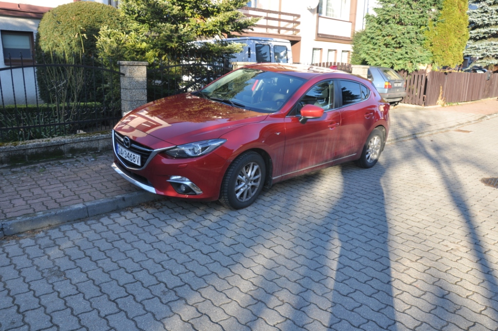 Od ponad miesiąca jestem szczęśliwym (albo i nie do końca) posiadaczem nowej Mazdy 3 Sky energy + ksenon + navi w krwistym kolorze soul red. Wcześniej jeździłem skodą superb 2.0 tdi kombi na full wypasie. Sprzedałem bo zacząłem mieć problemy mechaniczne i bałem się, że mnie rozłożą. Szukałem czegoś mniejszego i nierzucającego się w oczy. Nie do końca znalazłem bo Mazda wcale nie jest taka mała a ten czerwony trudno nazwać "nierzucający". Rzucający, rzucający ale na kolana. Z resztą całe auto mi się spodobało. Byłem oczarowany no i ta gwarancja – 5lat. Ja muszę mieć auto do pracy bezawaryjne.