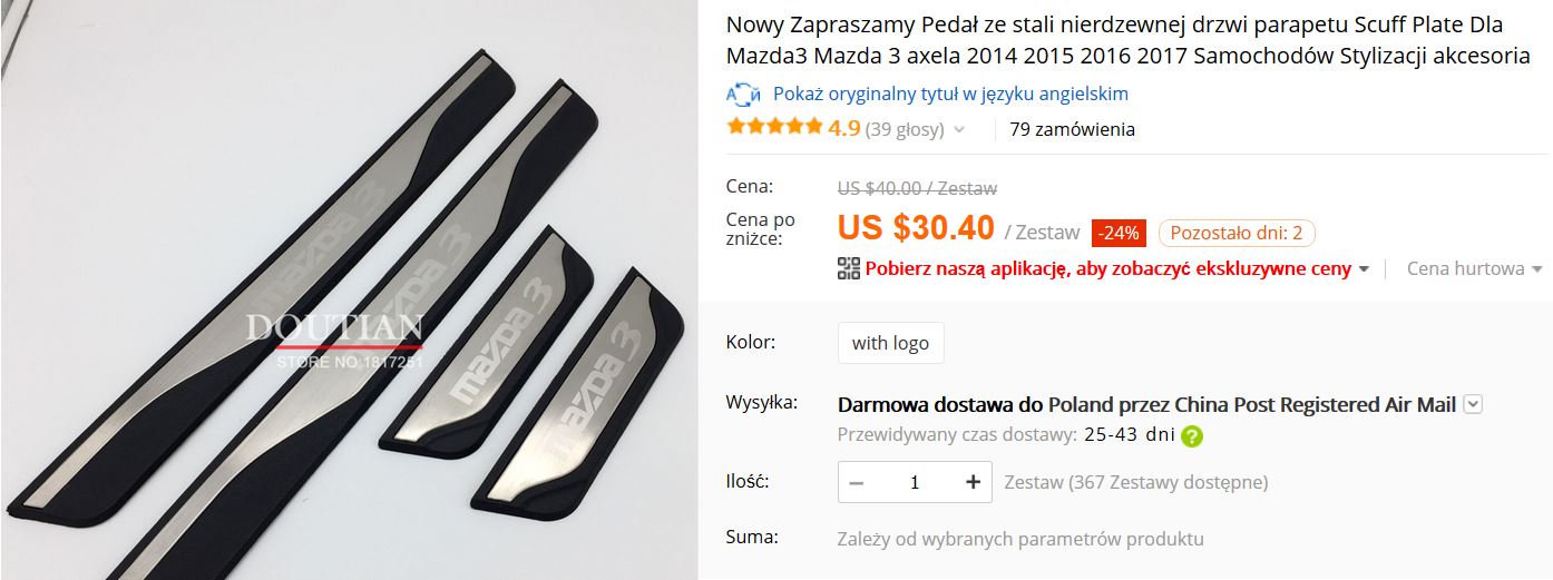 Zawsze mnie zastanawiała jakość tego gruzu z aliexpress. Jak już przymierzysz progi, to daj znać, może się skuszę :)