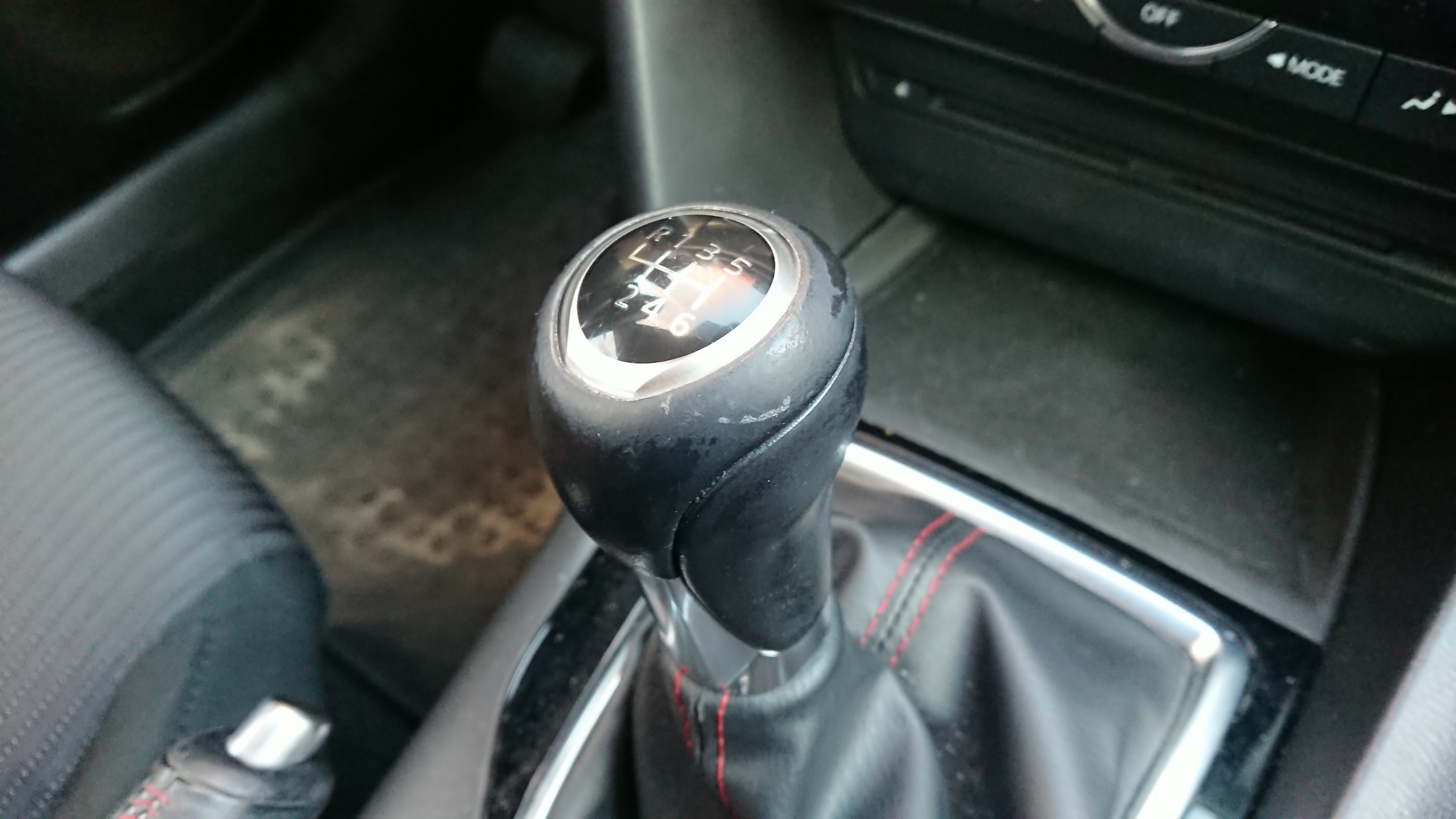 Dźwignia zmiany biegów – ta biała kreska to raczej brud. Ogólnie dość wytarta, ale z miejsca kierowcy ledwo to widać.