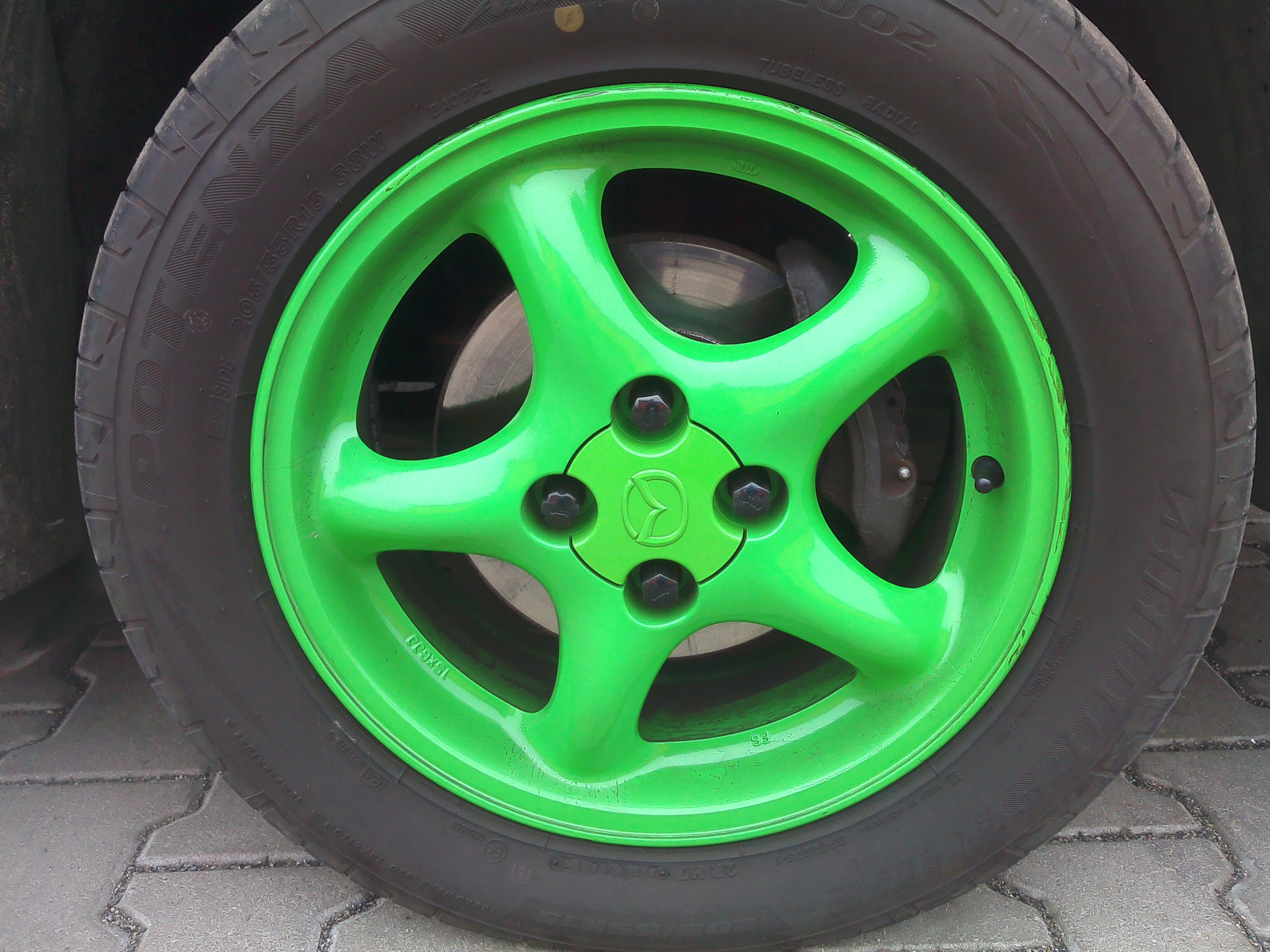 Zaciski Mazda 6 GG po pełnej regeneracji, Tarcze ATE 283 mm, przewiercone na 4x100, klocki ATE, zwrotnice wraz z osłonami z 323F BA GT V6 i aluminiowe pierścienie centrujące. Do tego nowe łożyska NSK+uszczelniacze.