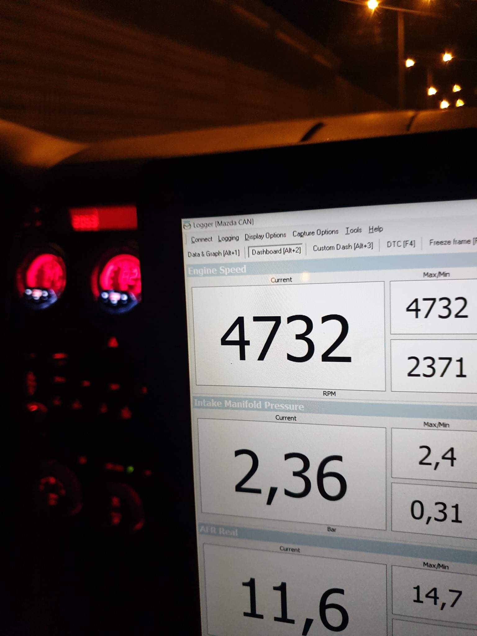 W końcu zaczęliśmy strojenie z DISItune. Na szczęście na razie mazda jest bardzo posłuszna. Co jej wklepiemy, to pięknie działa. Najlepsze jest to, że na pierwszej mapie, jaką zrobiliśmy, czyli 1b doładowania, z otwartym na 100% wg auto lepiej jechało niż przed remontem na doladowniu 1.5b. Na weekend mam ustawiona soft mapę na 1.3b.. I naprawdę już czuć że jedzie..