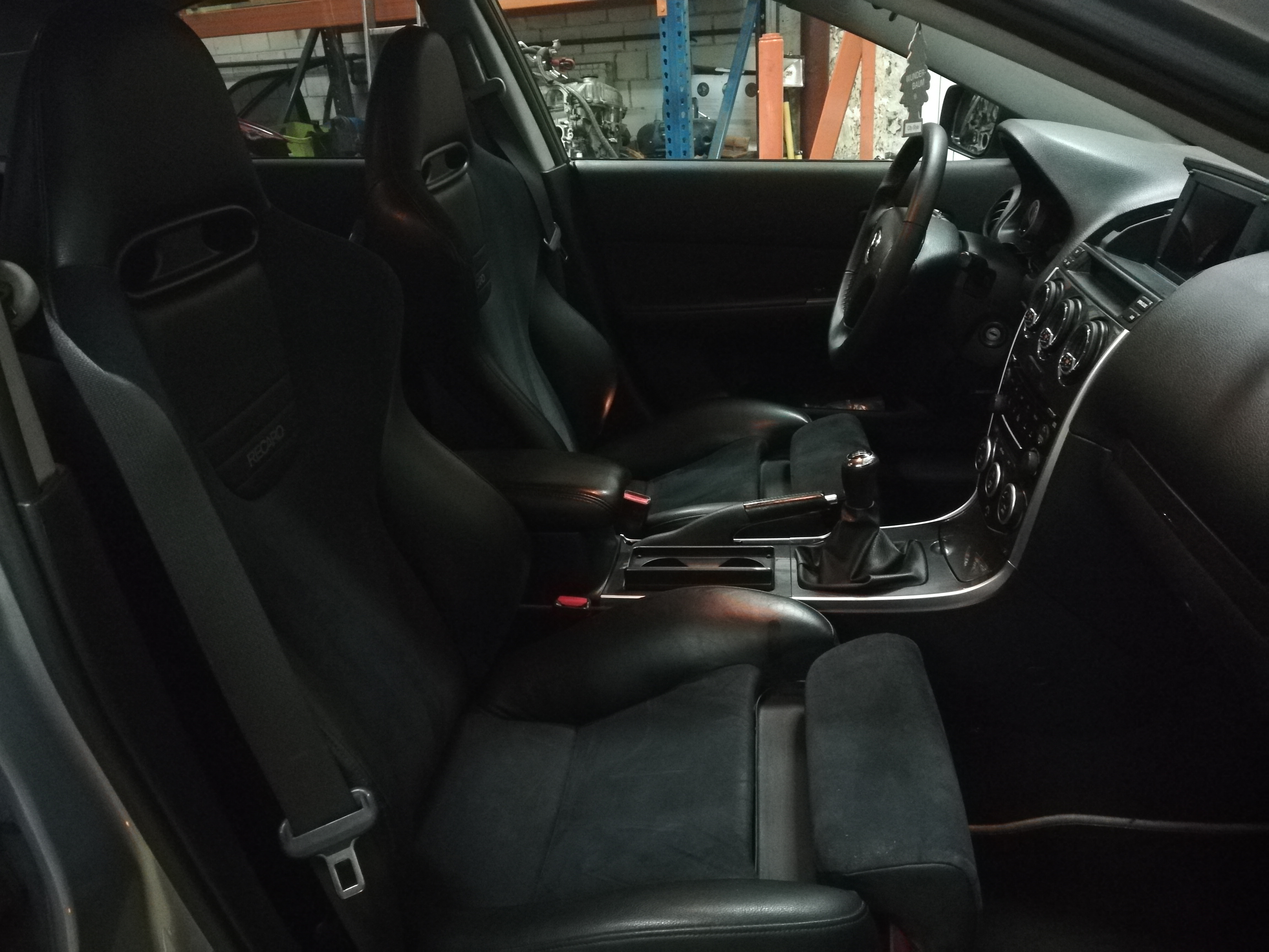 Natomiast to co najbardziej mnie cieszy to w końcu zamontowane fotele Recaro z Renault Megane 2 RS z wersji CUP. I to w idealnie pasującym do mojego wnętrza kolorze, czarna skóra + alkantara