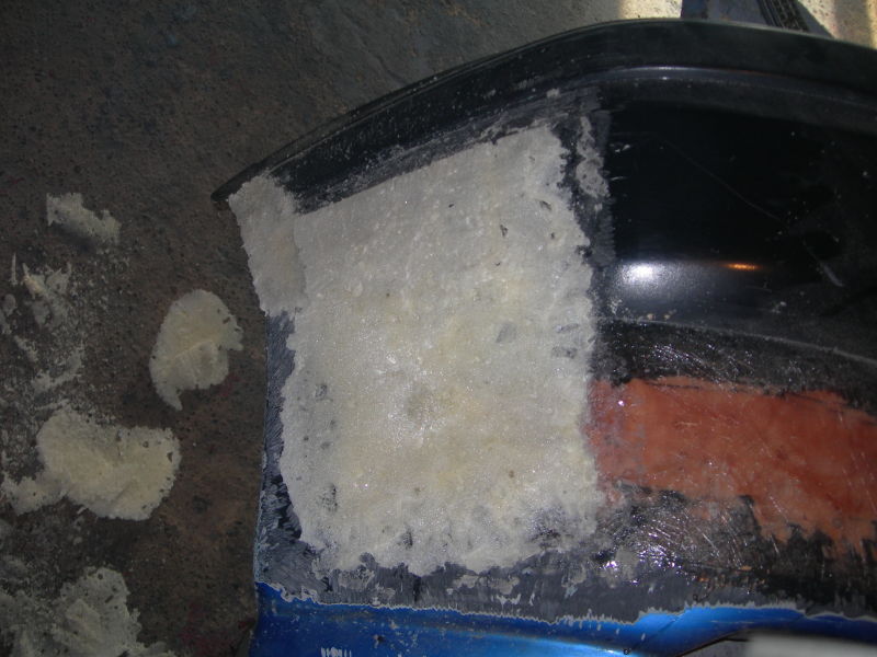fajnie ten wlot wyszedl.idelanie bedzie chlodzic turbinke i gorna czesc chlodnicy.przedni zderzaczek tez pieknie rowniotko wyszedl.a ogolnie autko wyglada teraz (takie brudne,bez lampy,plama oleju) jak najgorszy wrak.ten noz w bagazniku moze mi sie kiedys przydac.