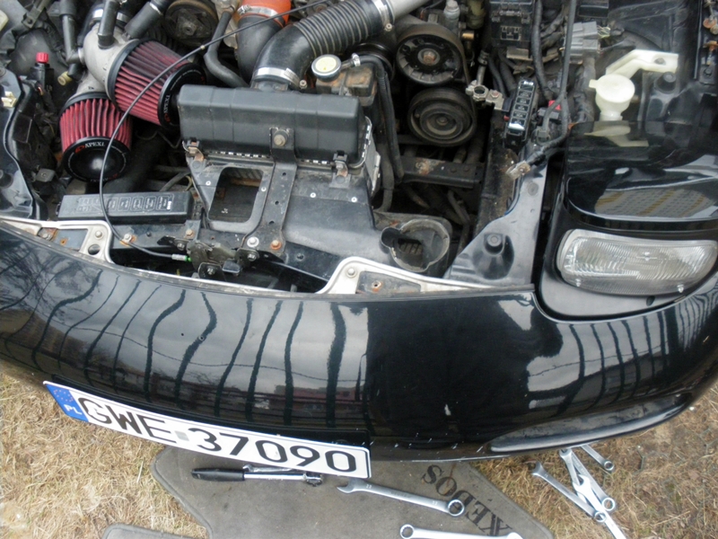 Wymiana przepalonych żarówek, bezpieczników, demontaż i uszczelnienie spojlera ( przez jedną śrubę woda dostawała się do środka), czyszczenie i malowanie zacisków. W przyszłym tygodniu biorę się za demontaż klimatyzacji. W środę auto oddaję do lakiernika.
