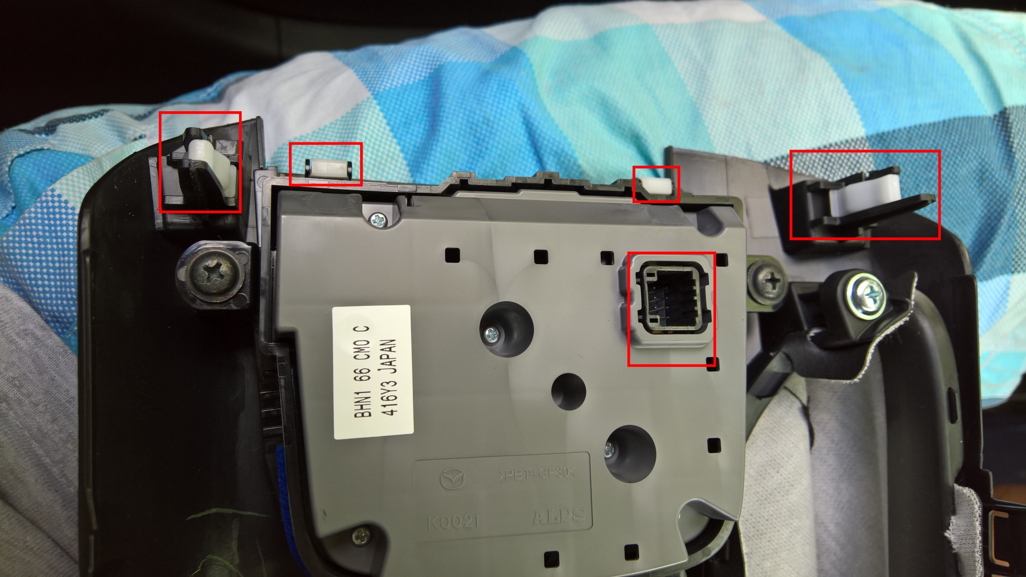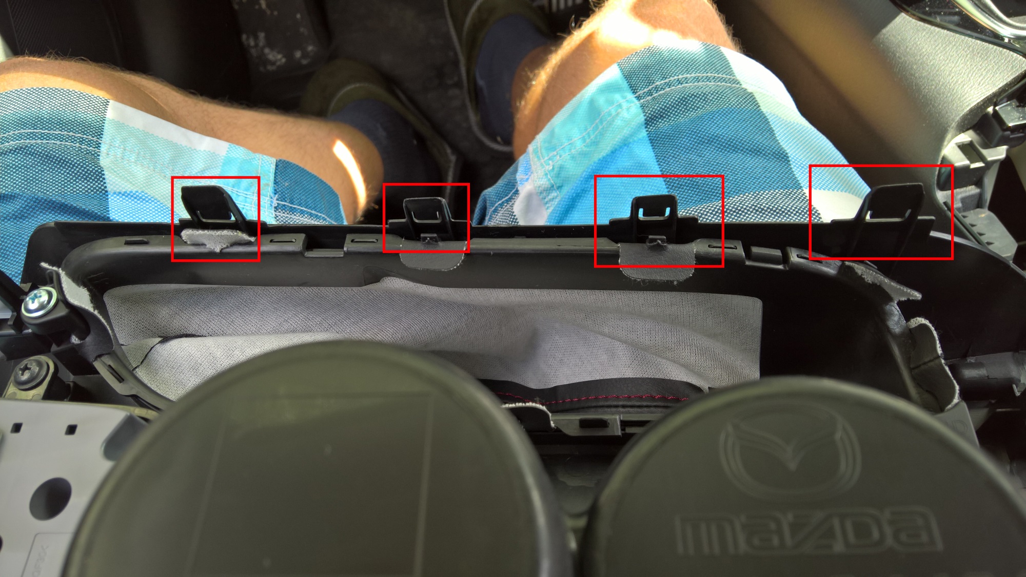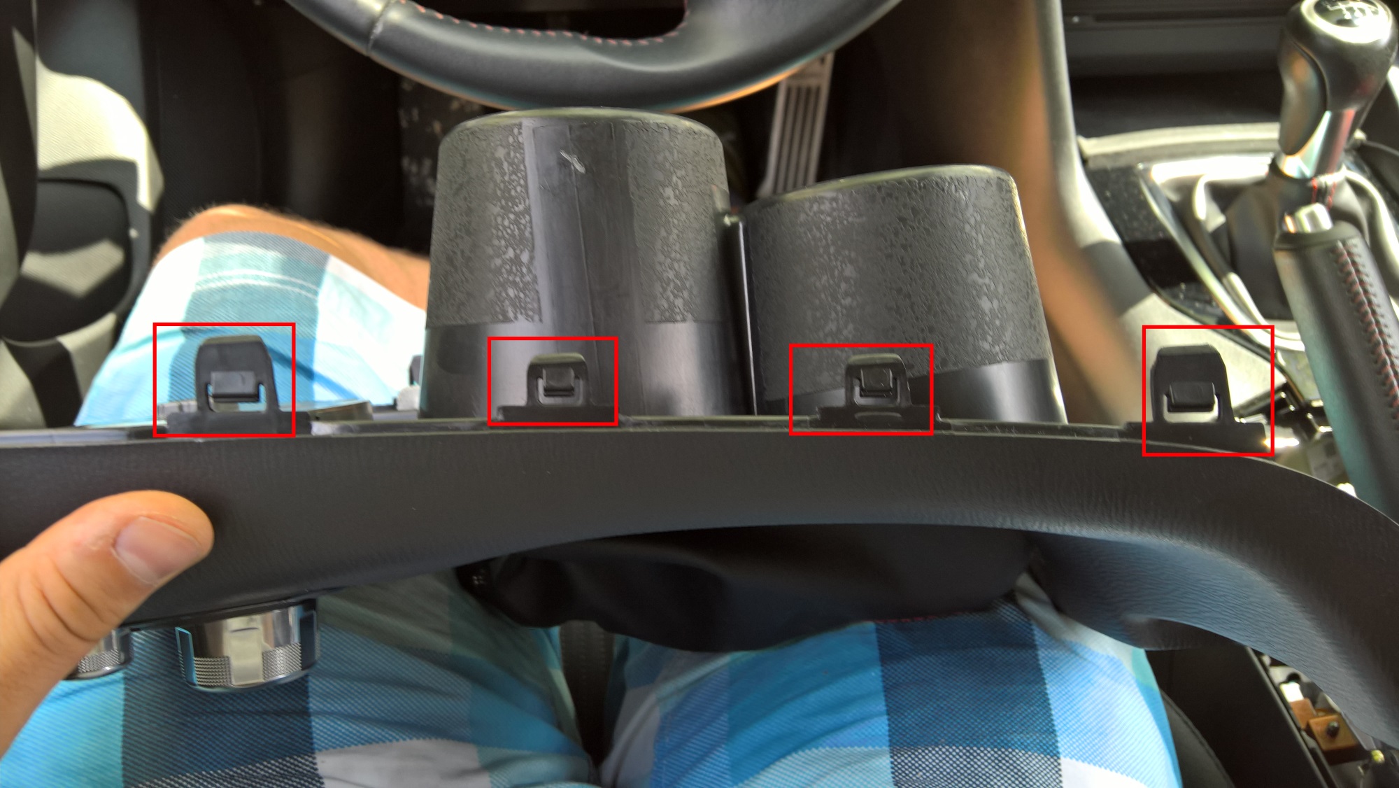 Demontaż konsoli centralnej jest dość prosty. Jest 1 śruba pod podkładkami na kubki, reszta to zatrzaski.