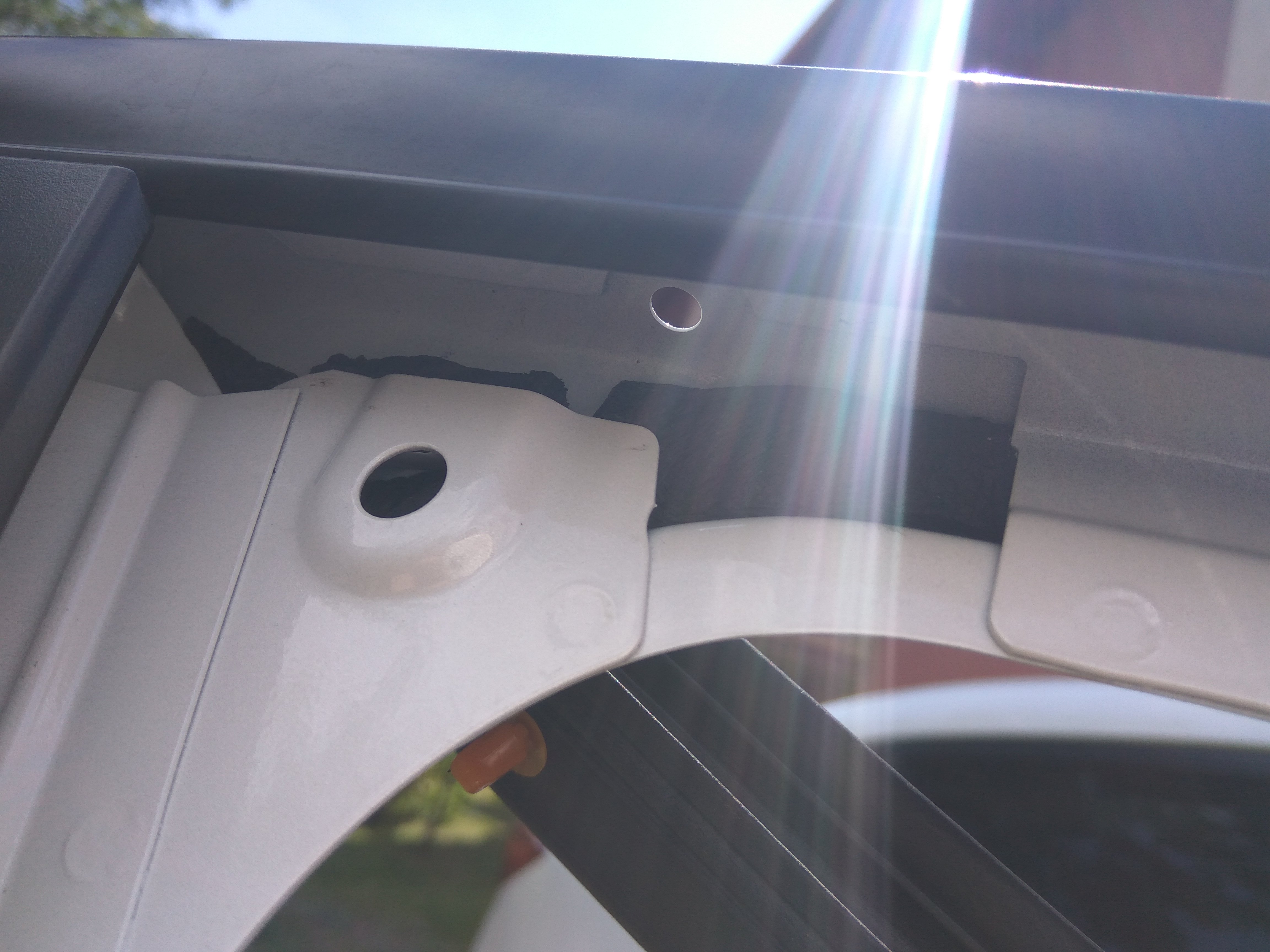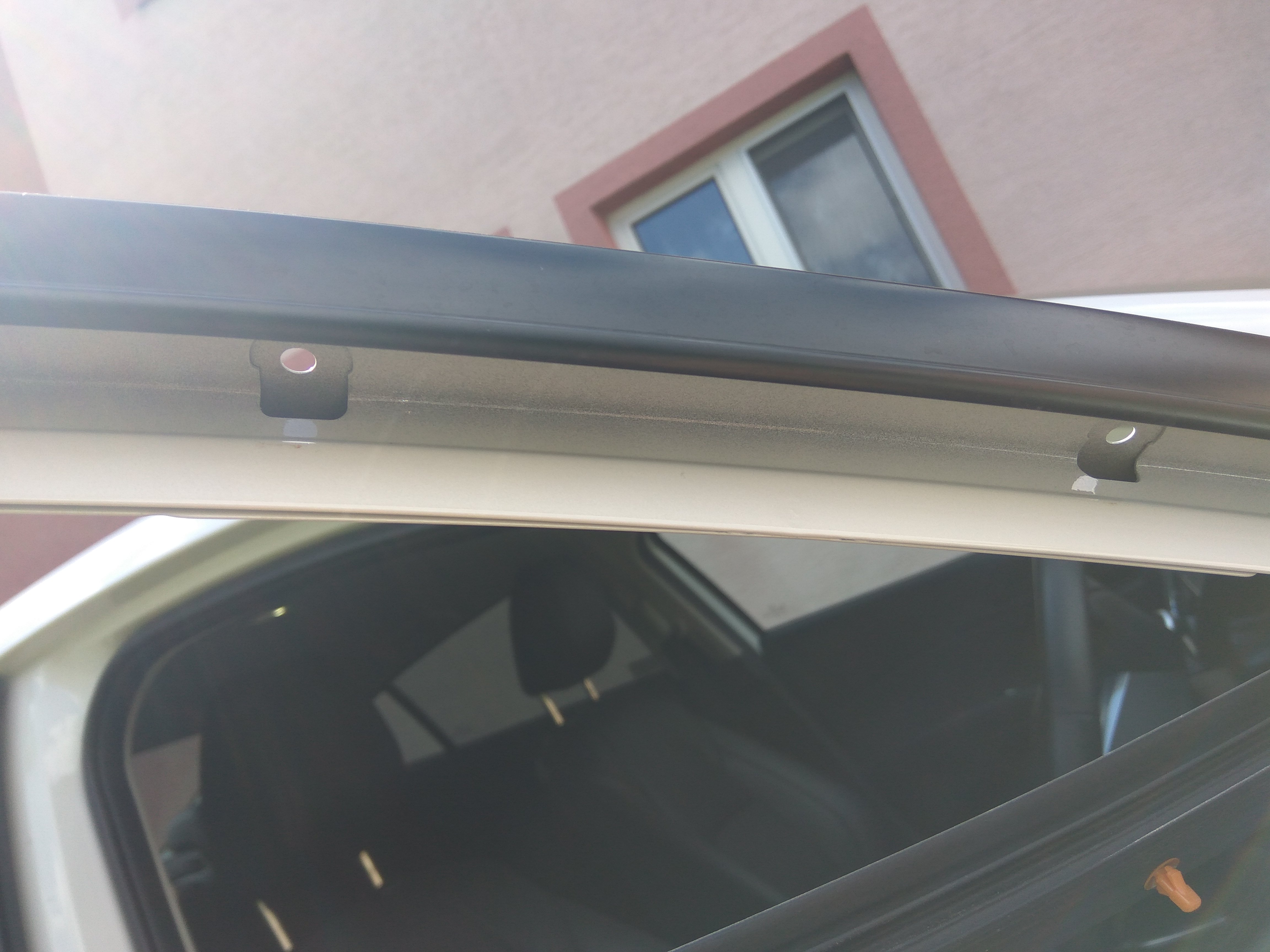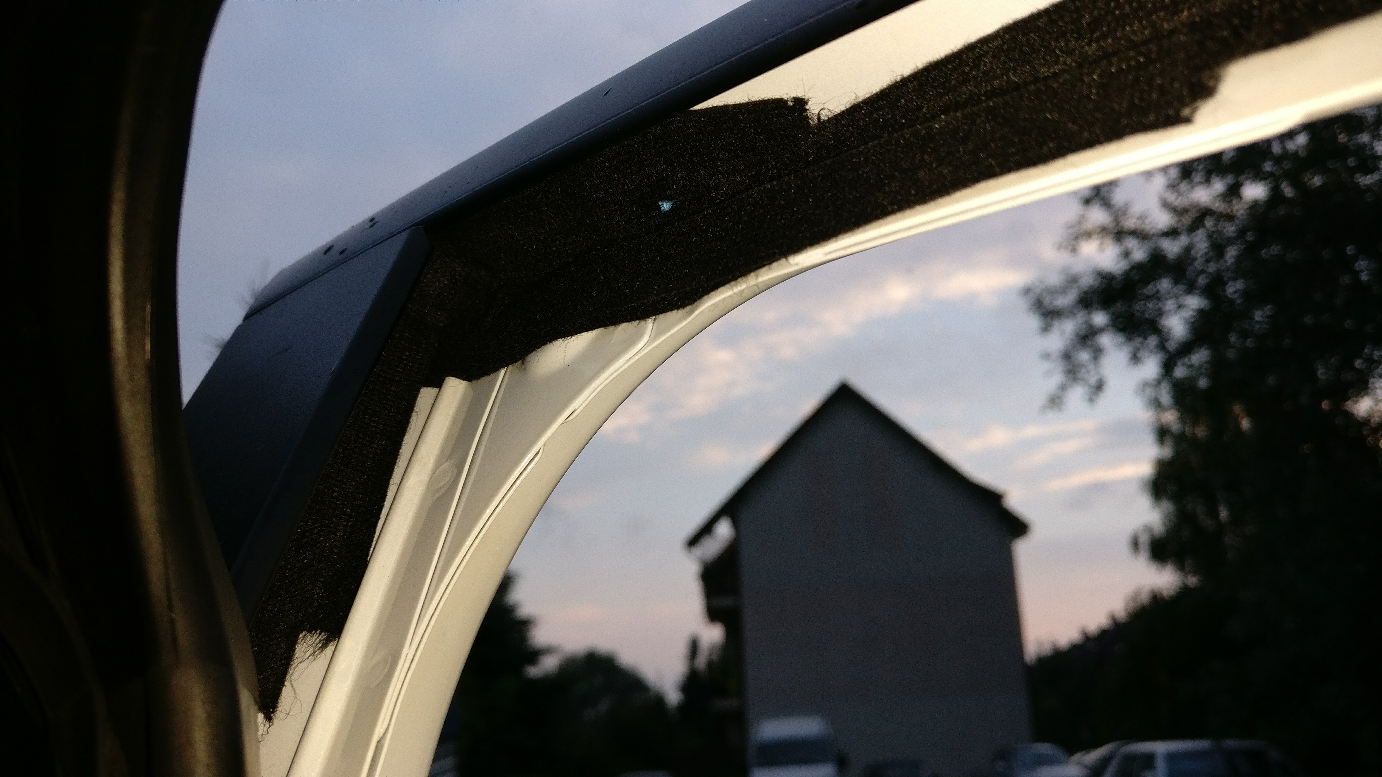 Zdjalem tyle uszczelki ile sie tylko dalo. Tych dziur jest tam więcej niż tylko 1 z tylu. Mamy przy lusterku, 4 lub 5 u góry i 1 w górnym narożniku.