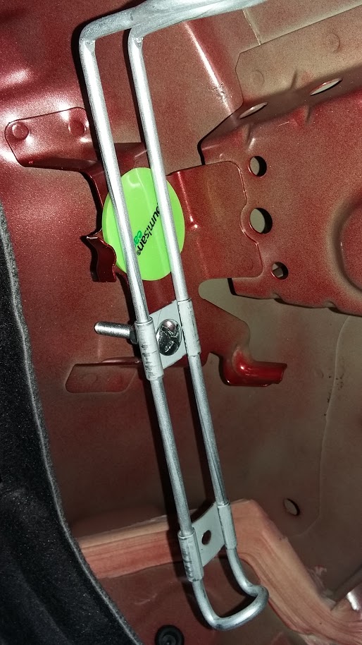 Zrobiłem to kilka dni po zakupie i użyłem tego co miałem pod ręką. Obiecałem sobie, że "później" skrócę śrubę, ładnie gumę dopasuję... ale jak to bywa, dzisiaj zaglądnąłem tam pierwszy raz od zamontowania i chyba tak zostanie do końca
