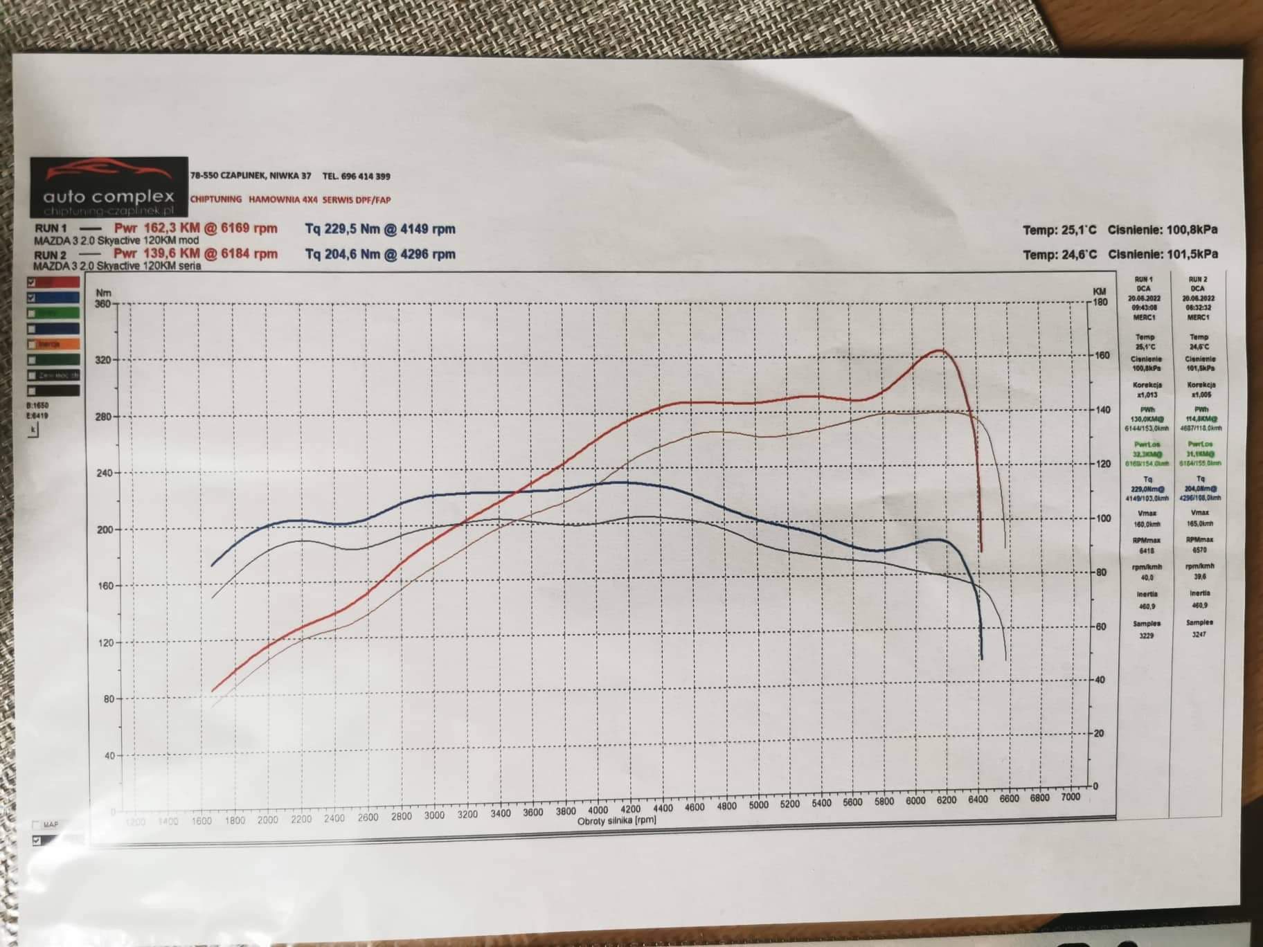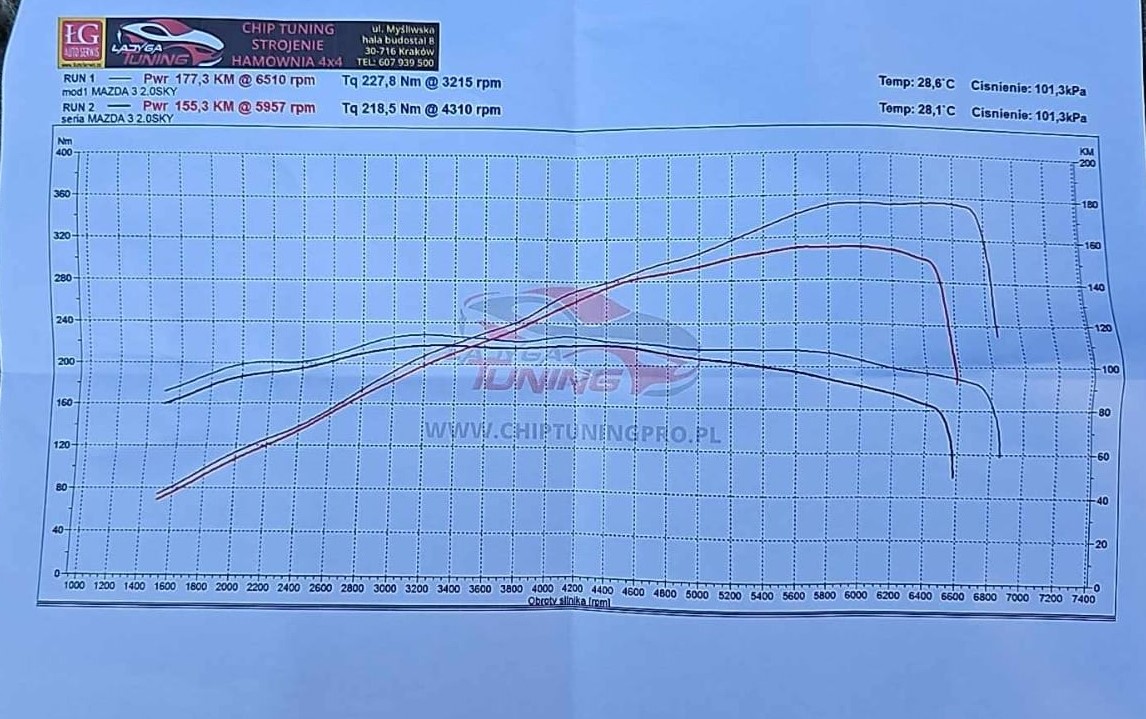 U mnie na starej wersji softu fabrycznego mod wypadł lepiej. Ale jak mi wgrali w Mazdzie w 2020 nowy soft 120KM, to już mod nie jest taki szałowy. Ale i tak jest duża różnica. Bardzo niski moment w serii-chyba poniżej danych katalogowych.