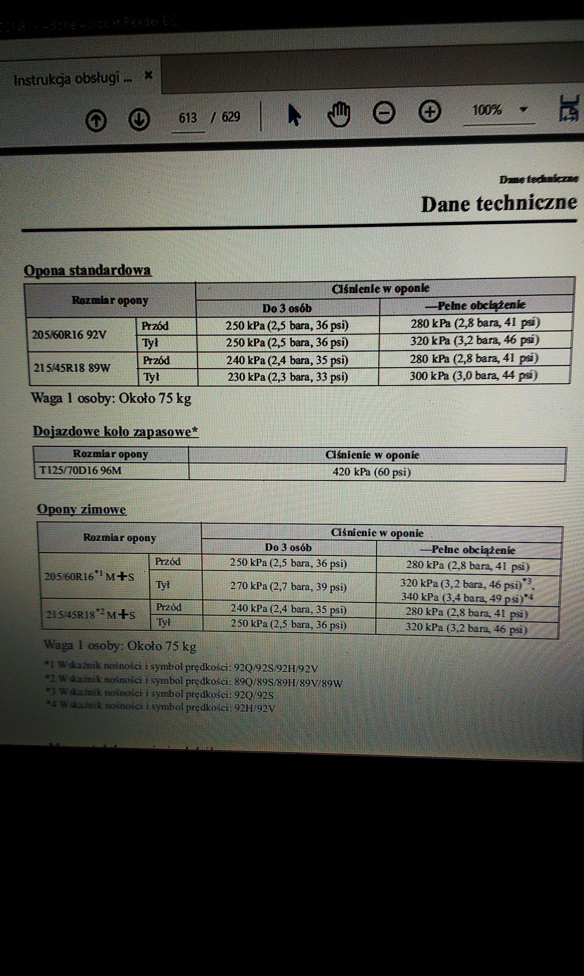 To chyba źle pamiętasz, bo dla 215/45R18 ciśnienie podstawowe wynosi – przód 2,4, tył 2,3 bara, a przy pełnym obciążeniu przód 2,8, tył 3,0 bara