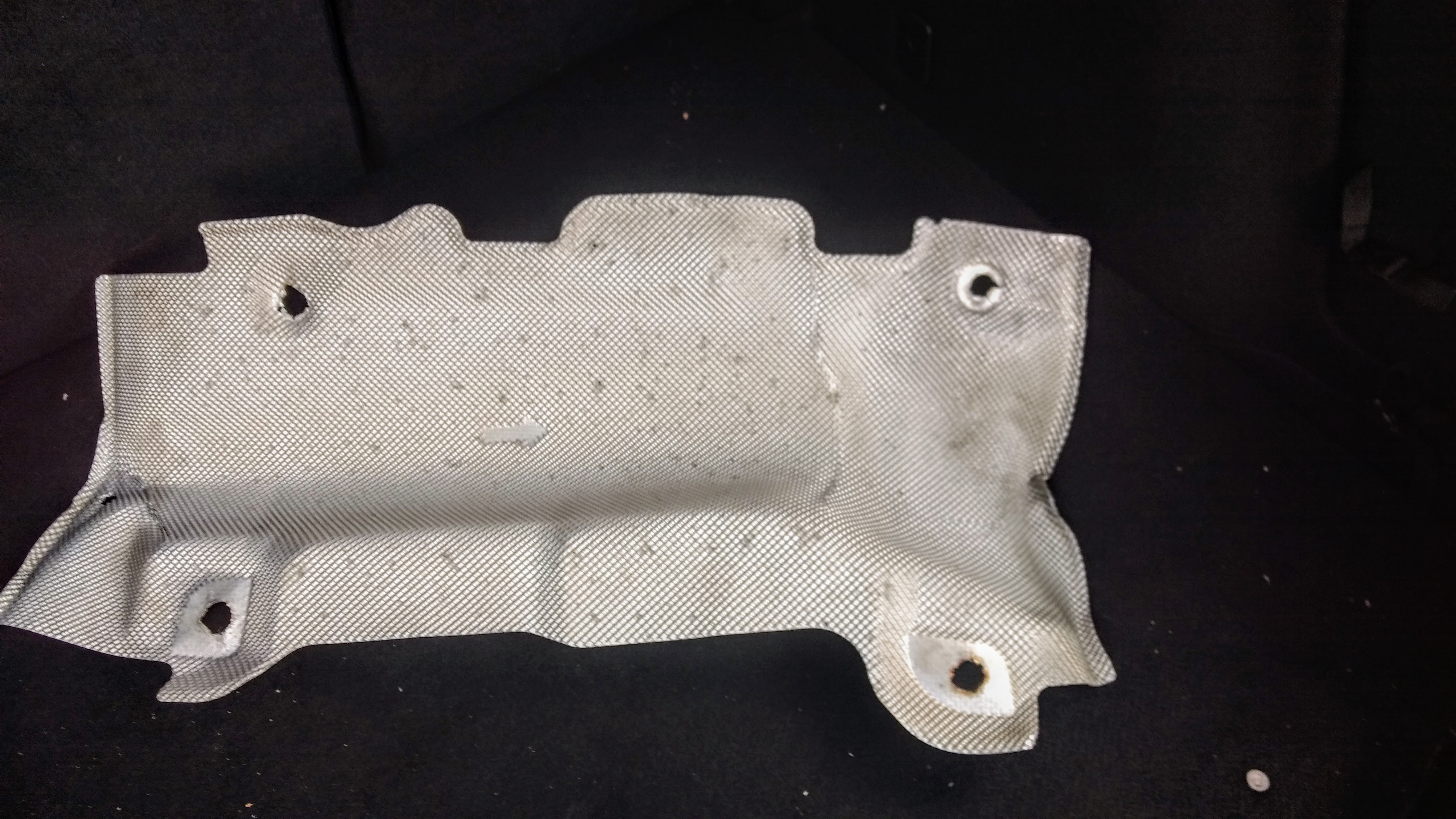 Sezon na osłony termiczne w pełni. Tym razem chodzi o osłonę termiczną odzielającą zbiornik paliwa od wydechu. Coś mi okrutnie dzwoniło pod podłogą i okazało się, że osłona "odpadła" od mocowań i zawisła na wydechu. Dotychczasowe mocowania (4 sztuki) raczej nie do wykorzystania. Śruby, czy nakrętki, wykonane z szajs metalu, tak przerdzewiałe ze zostały po nich kikuty. Jedno z mocowań nota bene, znajduje się w samym zbiorniku paliwa! Osłona leży w bagażniku i teraz pytanie, mocować ją z powrotem?