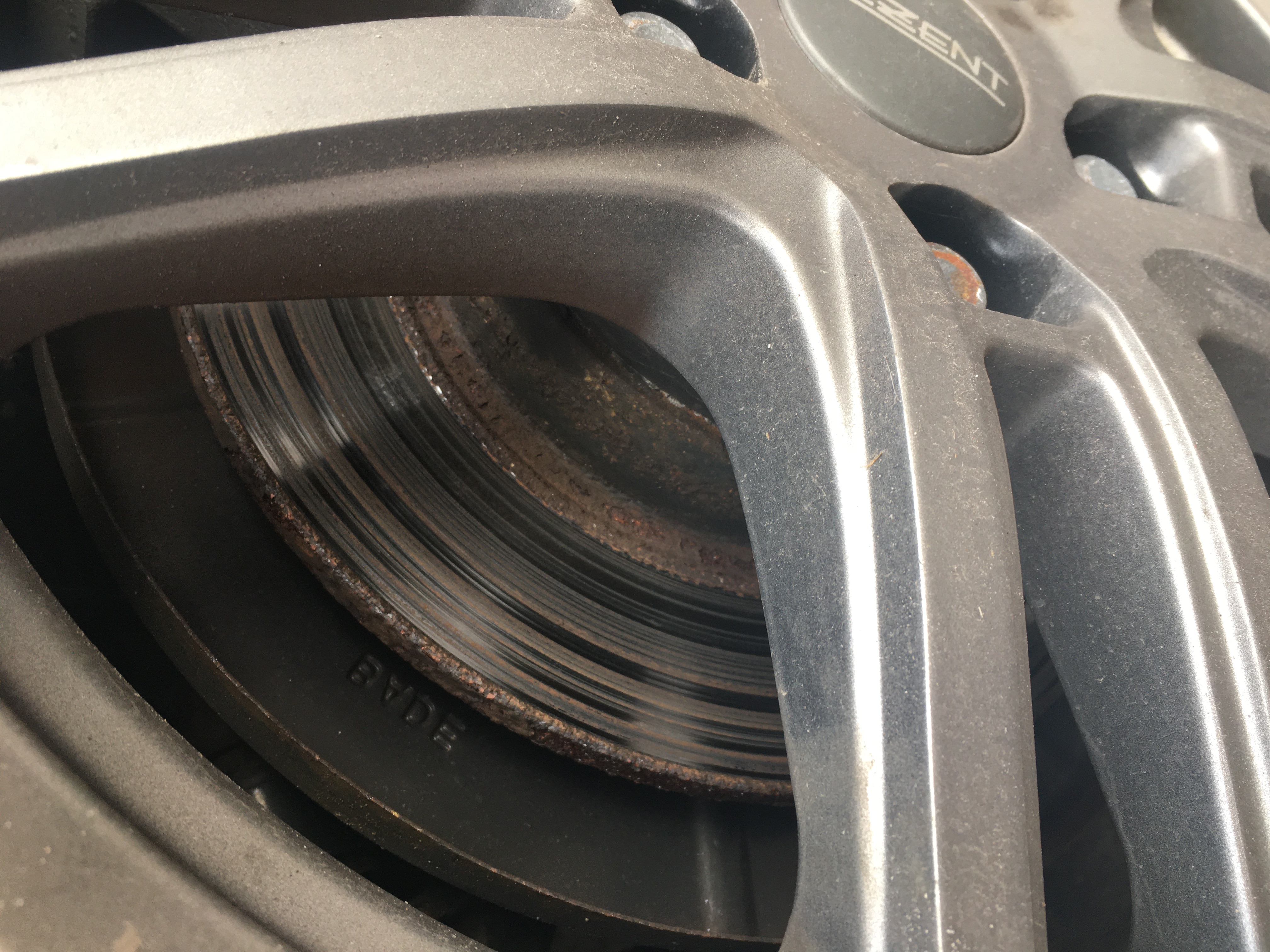 Stan po przejechaniu 8 tys. km na hamulcach przednich z Mazdy 6 (tarcze ATE, klocki EBC Green Stuff):