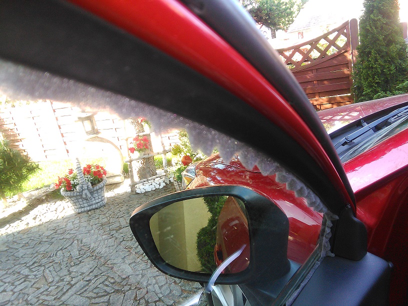 Trochę inaczej wyglądała później rozmowa w towarzystwie handlowca ,z którym załatwiałem zakup. Wtedy słyszałem już ,że taki problem nie jest znany Panu z serwisu i nigdy nic o tym nie słyszał. Zapytałem w jakiej formie mam zgłosić ten fakt oficjalnie? Po tym pytaniu Pan z serwisu chyba zmienił nastawienie. Umówiliśmy się ,że spróbuję ustalić podczas jazdy ,w którym miejscu pojawia się ten dźwięk. Muszę się zdać na słuch żony ,która jeździ jako pasażer i z jej opinią udać się do nich jeszcze raz. Wtedy przyjrzą się drzwiom, uszczelkom itp. dokładnie i będą szukali rozwiązania.