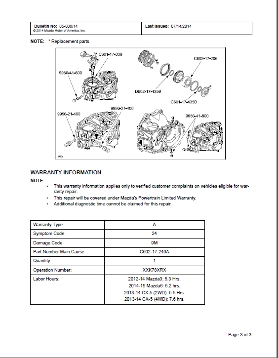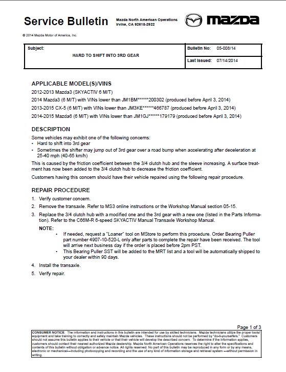 We czwartek jadę z tym problemem do serwisu. Zobaczymy co powiedzą. Problem z szarpaniem, niespadaniem obrotów przy przełączaniu z 2 na 3 bieg i haczeniem zgłaszałem kilkukrotnie, ale bez efektu. Zauważ, że w Service bulletin pisze JM3 KE... co nie jest jednoznaczne z JMZ KE... Tak więc wg mnie aby kwalifikować się do naprawy, musi być wydany jakiś inny dokument, może ta nota serwisowa R039/14B coś dokładniej wyjaśnia, ale nie mamy do niej dostępu.