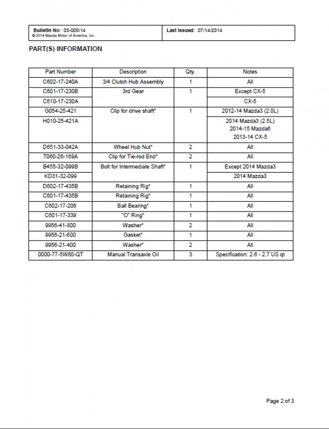 Ponoć w owianej tajemnicą noty R039/14B nikt nie wspomina o biegu 2. W ogóle nic nie wiadomo, jakich biegów dokładnie dotyczy w CX5 i jakich VIN ta nota.