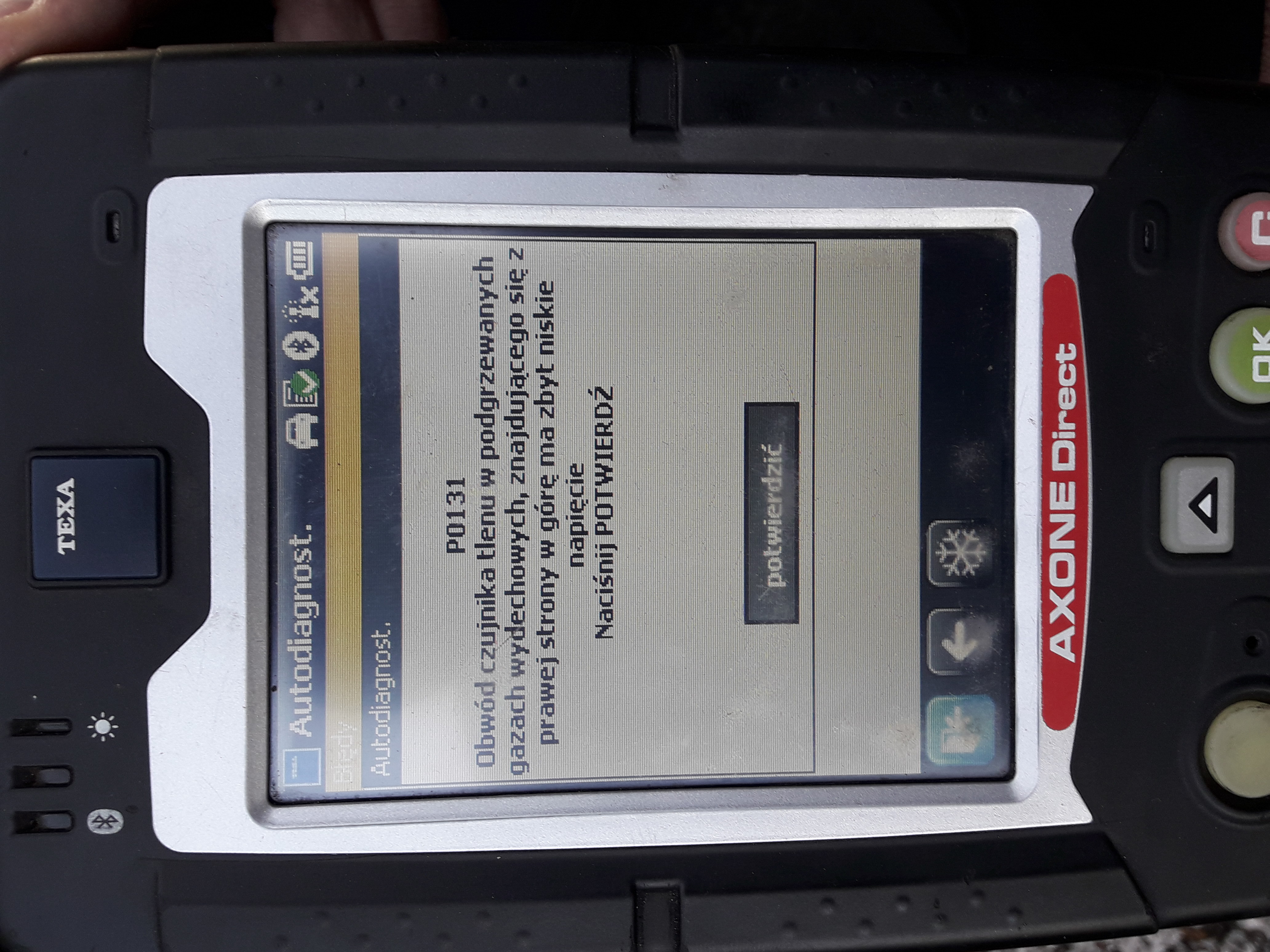 Kod błędu to P0131. Skasowałem w poniedziałek i na razie nie wraca.