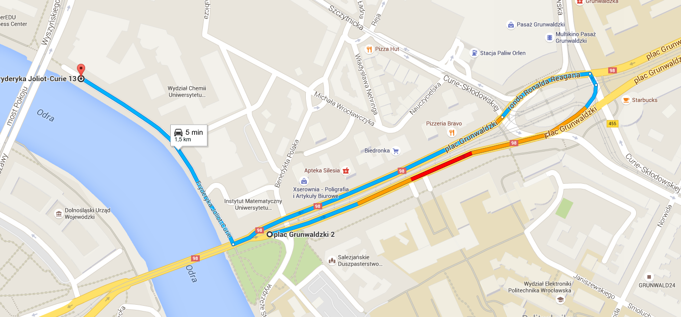 I jadąc od Galerii Dominikańskiej nie musicie objeżdżać całego ronda. Zaraz za mostem w prawo, zawinąć tam sobie i będzie można o wiele szybciej dotrzeć