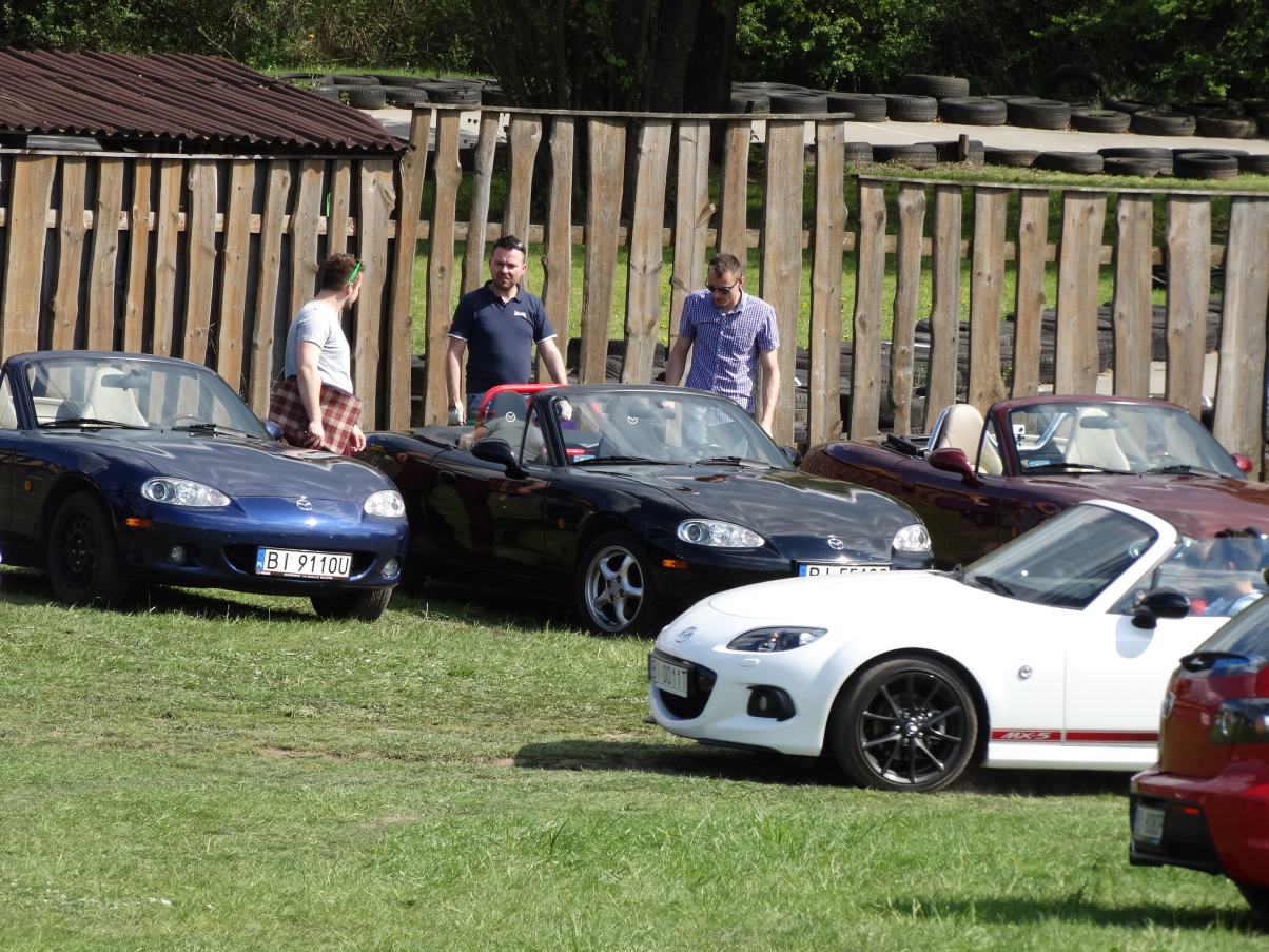 Wczesnym przedpołudniem ogarnąłem prowizoryczny parking na trawce i po chwili zjawiły się Miaty do odpasania ;)