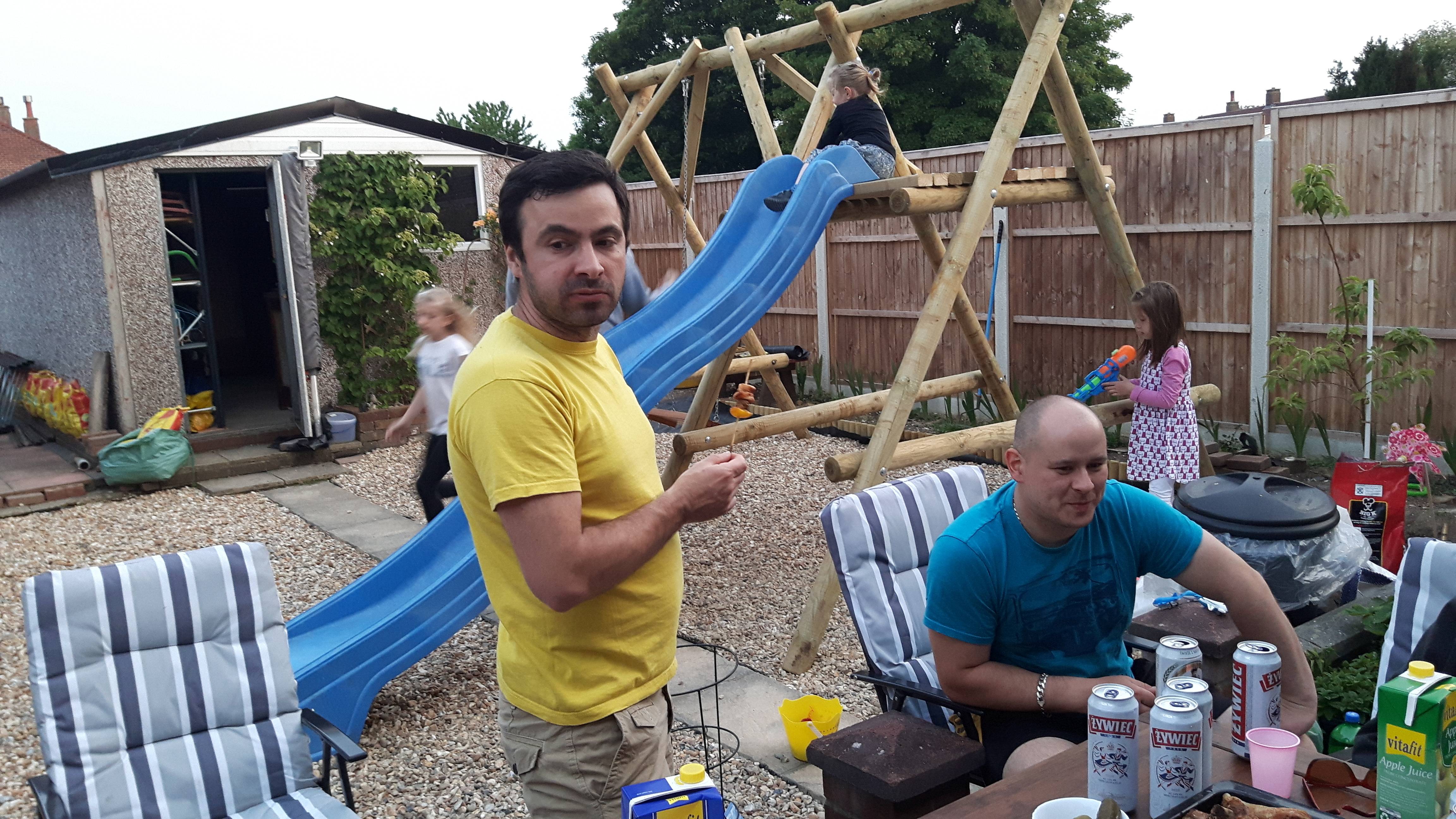Następnym punktem dnia był grill u gospodarzy (tomas7), dla niektórych nazywany punktem kulminacyjnym :–). Dzieciaki testowały nową huśtawkę i zjeżdżalnię po czym wystawiły atest bezpieczeństwa. Na zawartość stołu nikt nie narzekał, picia też nie brakowało. Po udanym grillu zaczęło wychodzić zmęczenie, którego chyba nikt się nie spodziewał. Z racji tego wszyscy udali się na zasłużony odpoczynek i zbieranie sił na dzień następny.