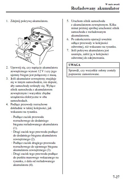Na akumulatorze z kolei jest ostrzeżenie przed podłączaniem kabli rozruchowych, o ile google dobrze przetłumaczył "japońskie krzaczki", stąd moje pytanie do bardziej doświadczonych posiadaczy Mazdy.