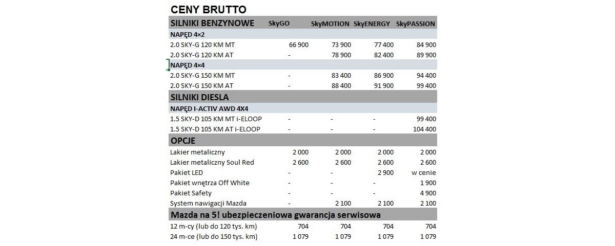 Idealny do miejskiej dżungli i wypadów na łono natury, ten kompaktowy crossover łączy unikatową filozofię projektową KODO i innowacyjną technologię SKYACTIV z komfortem i praktycznością, by dostosować się do Twojego stylu życia.