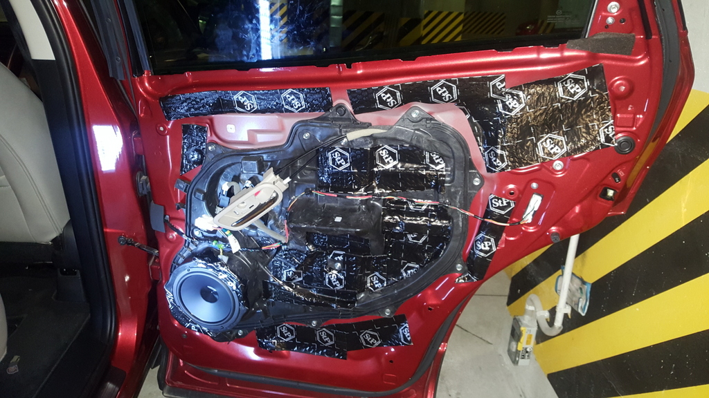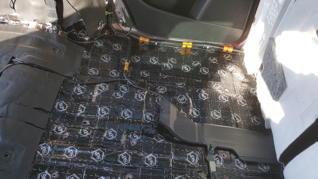 na podłogę dałem STP bitumiczną jakąś lepszą plus 2 cm pianki, trochę czasu mnie to kosztowało i energii, ale cenowo jak miałbym za to samo płacić w profesjonalnej firmie – koszt x 4, a tak w 1,2 kPLN sie zmieściłem, wyciszyłem prawie wszystko: maska przód, podłoga, 4 szt. drzwi, nadkola, bagażnik, nawet zahaczyłem o dach, ale nie chciało mi się ściągać podsufitki za dużo roboty (dach jest w 60% wyciszony). Jest znacznie ciszej niż przed, nawet mierzyłem poziom hałasu.