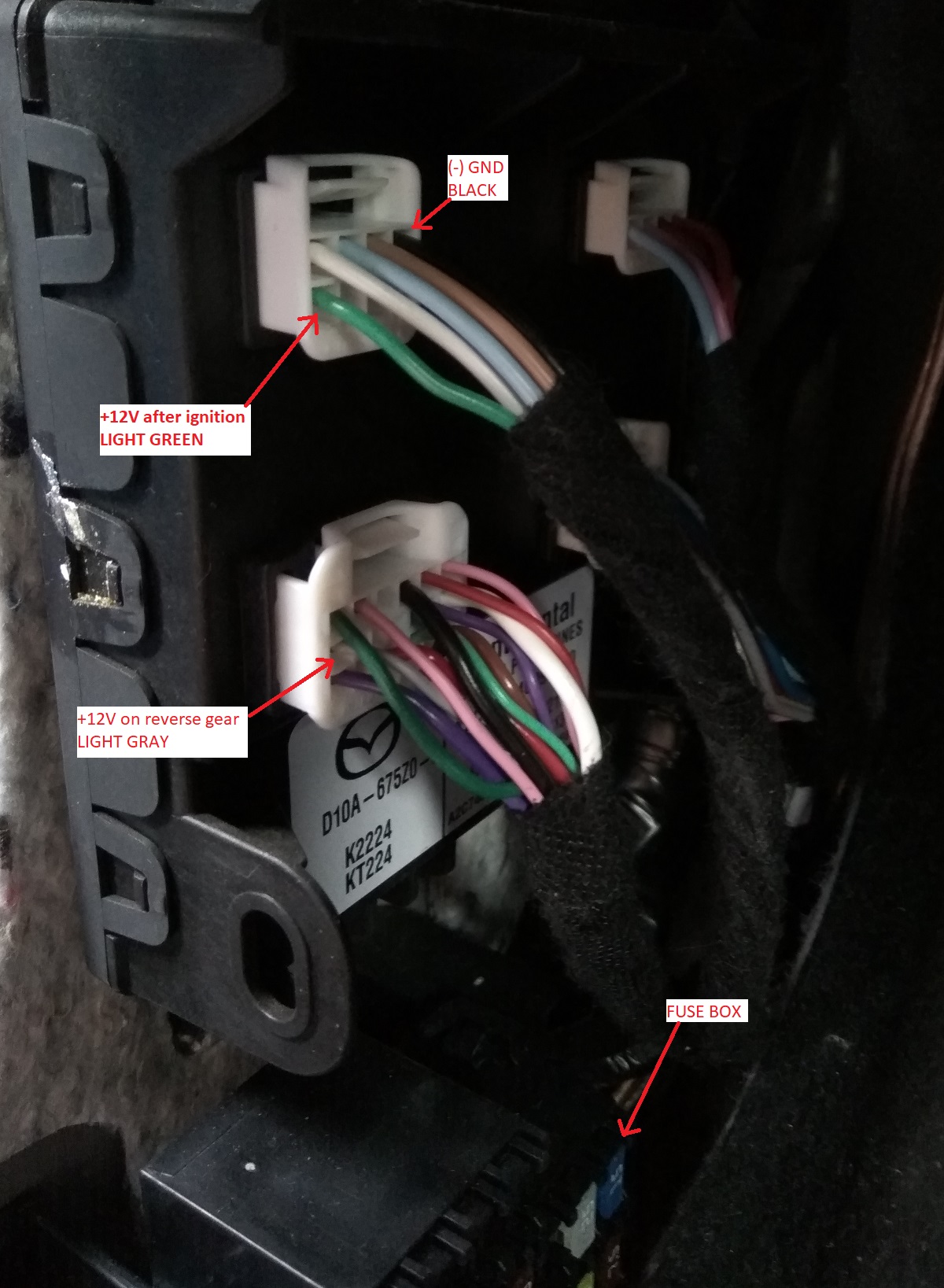 czy ktoś z forumowiczów wie gdzie znaleźć z przodu pojazdu Mazdy CX-3 – w jak najbliższej odległości od lusterka wewnętrznego – wiązkę, w której będzie sygnał włączonego wstecznego.