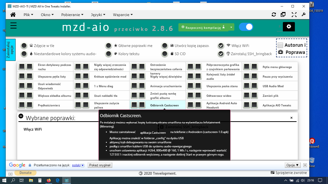 Zaznaczone AA + speedometr + domyśle: Enable WIFI i Instal SSH_bringback.