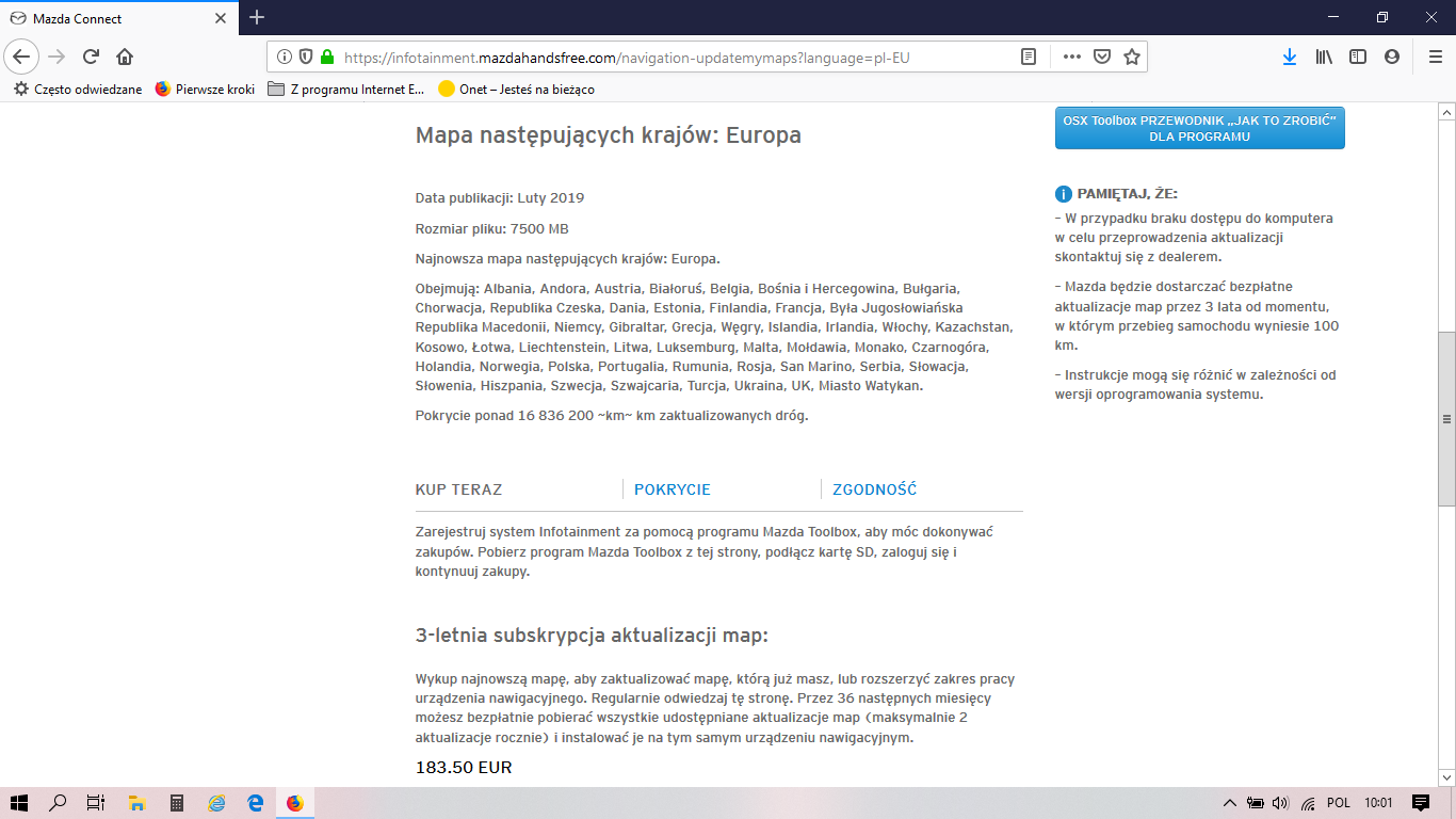 2 darmowe aktualizacje dotyczą nowej *wersji* map, a nie tego, że sobie możesz zrobić 2 razy do roku update. Innymi słowy, Mazda wypuszcza nową wersję maksymalnie 2 razy w roku, a ty sobie możesz sprawdzać/update'ować jak często chcesz. W związku z tym polecam wykupienie wtedy, gdy uzyskasz informację (np. w tym wątku), że pojawiła się pierwsza aktualizacja po tym, jak tobie skończy się abonament.