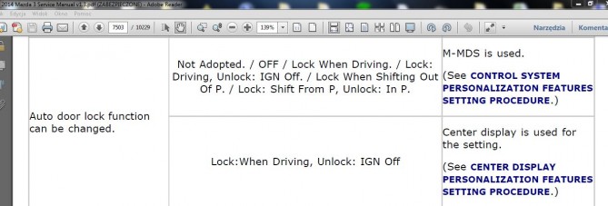 Opcja automatycznego ryglowania zamków nie daje mi spokoju, ponieważ widziałem że można włączyć. ALE kiedy ponownie chciałem to już tej opcji nie było