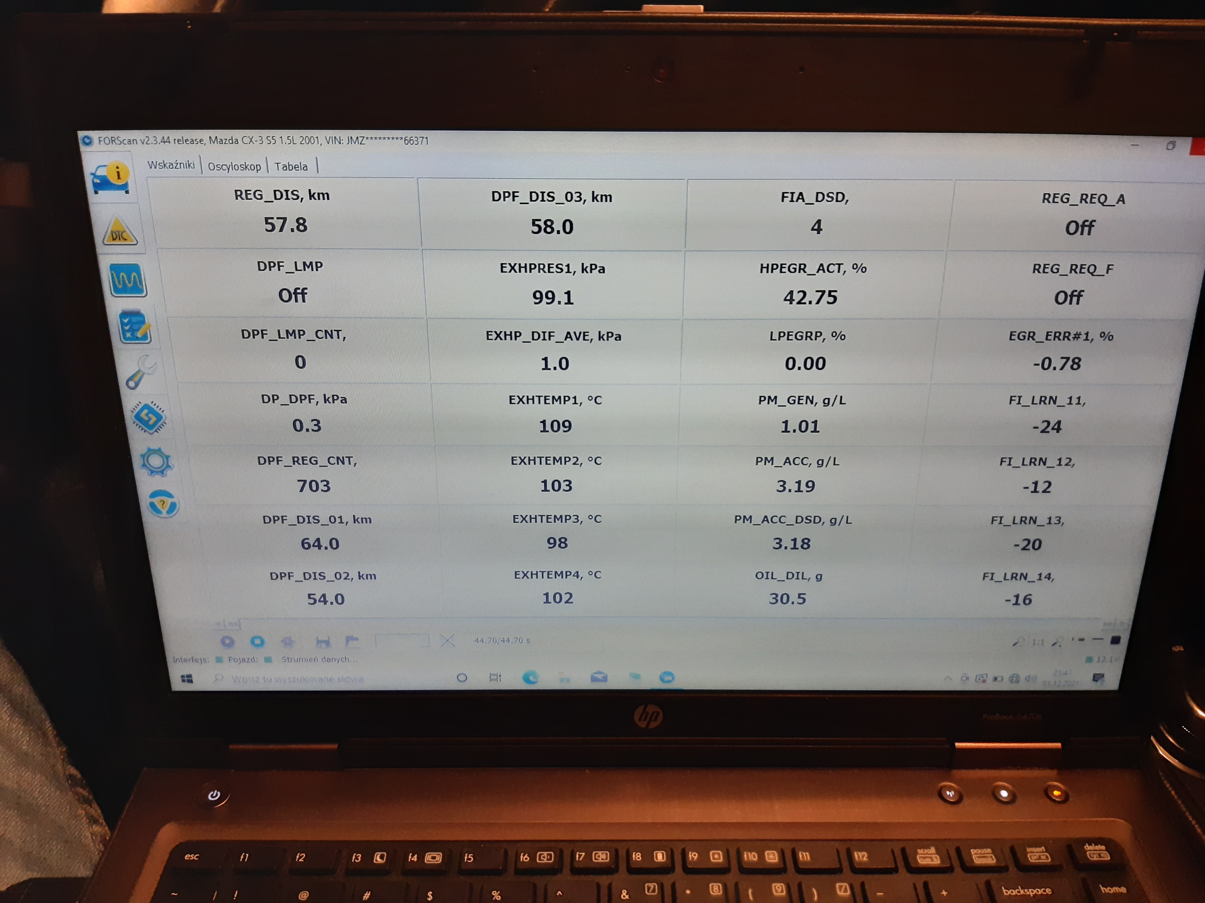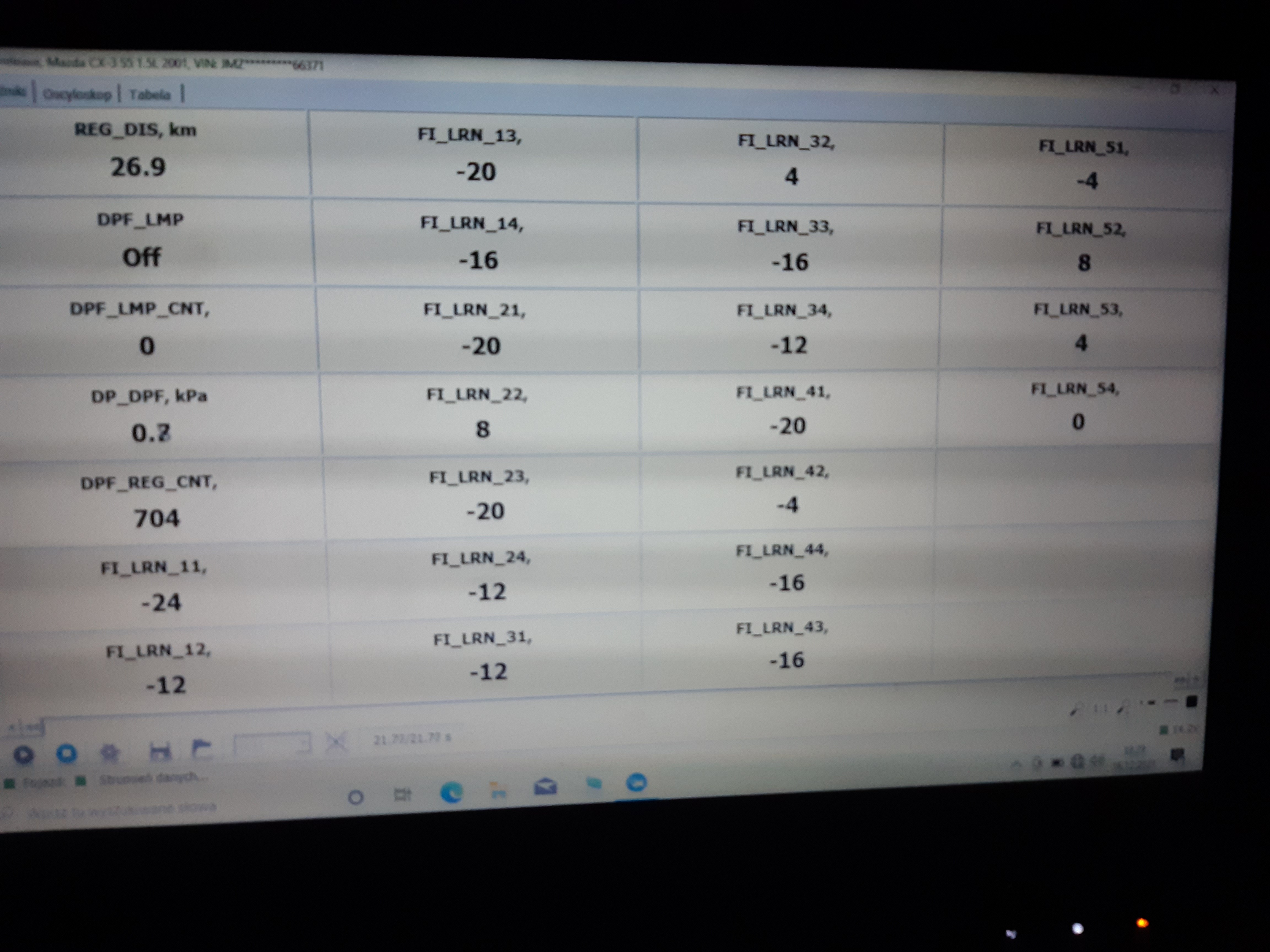 Z tego zdjęcia można wywnioskować, że albo auto ma ok. 200 tyś przebiegu, albo filtr DPF zdecydowanie za często się wypala (DPF_REG_CNT). Nigdy nie miałem do czynienia z 1.5D, ale trochę dziwią mnie 3 różne DPF_DIS. Jeśli tą to wartości dystansu przejechanego pomiędzy wypaleniami, to tragedia – zdecydowanie zbyt często się filtr wypala. Poniżej 50km auto wywala już błąd DPF.
