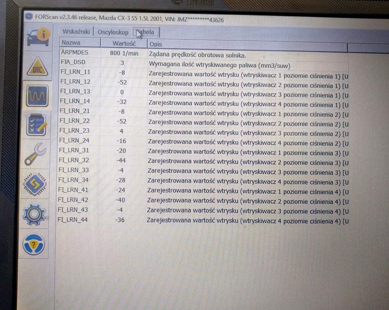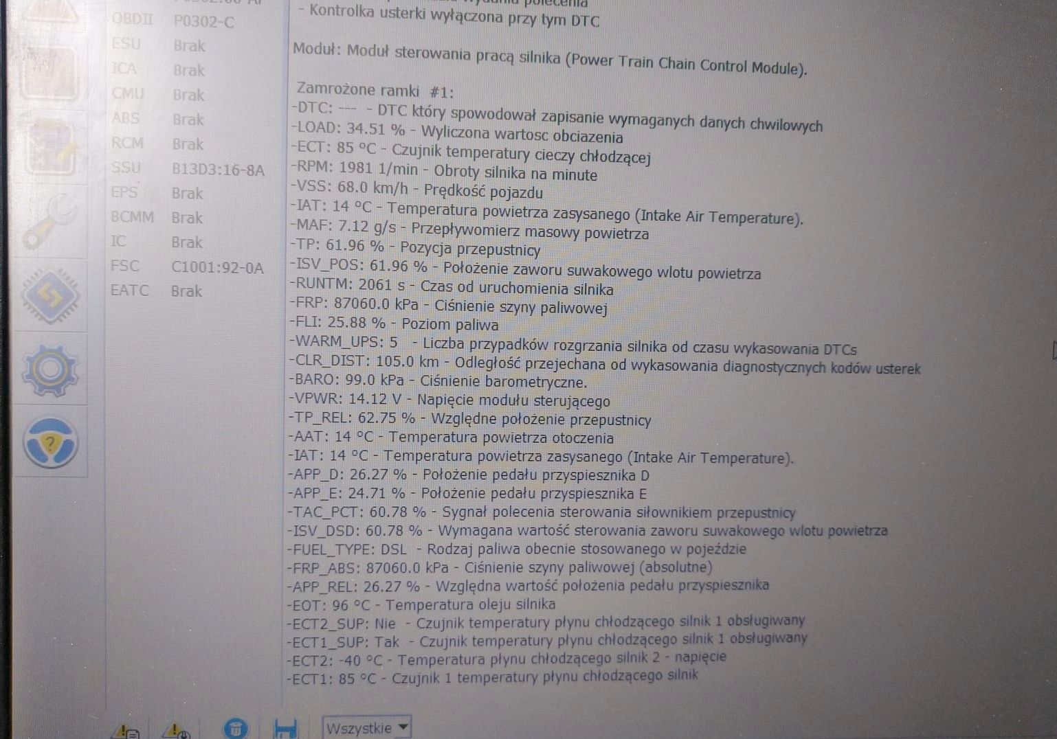 Witam ponownie...Wtryski Klientka mówiła ze niby były robione, to wyłapaliśmy ze były zle zakodowane, teraz są już ok. Ale po przejechaniu 30 km, widzimy na komputerze że znowu ze wypalał się 17KM temu, na razie błąd nie wyskoczył ale pewnie jak zrobię ze 100KM , to wyskoczy, nie ma żadnych wewnętrznych błędów na tą chwile. Foto z pomiarów jak ząłczniki
