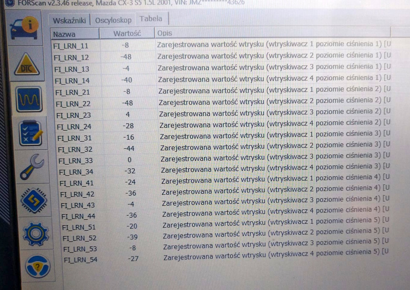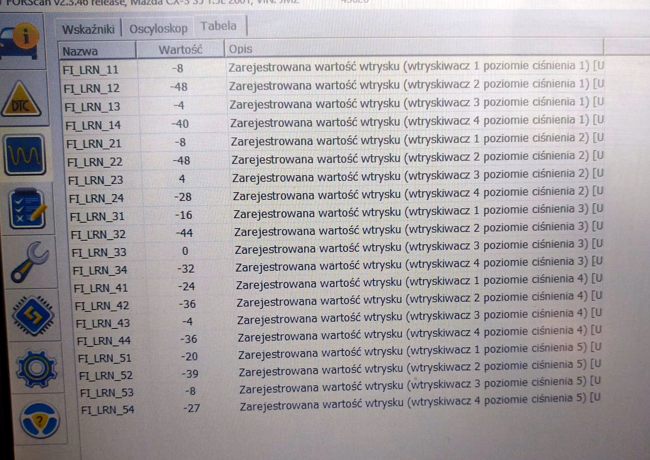 Dodatkowo masz 16 pidów (nie pamiętam nazw) pokazujących korekty przy 4 różnych ciśnieniach na szynie paliwowej, i to one a nie INJ_CMP lepiej pokazują stan wtrysków.