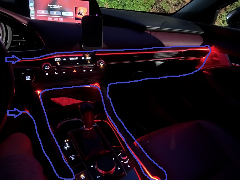 Będzie zmiana podświetlenia, bo zamawiam dynamicznie podświetlenie w miejsce światłowodowego. Zamocuje na tunelu środkowym, drzwiach, oraz na szerokości kokpitu.