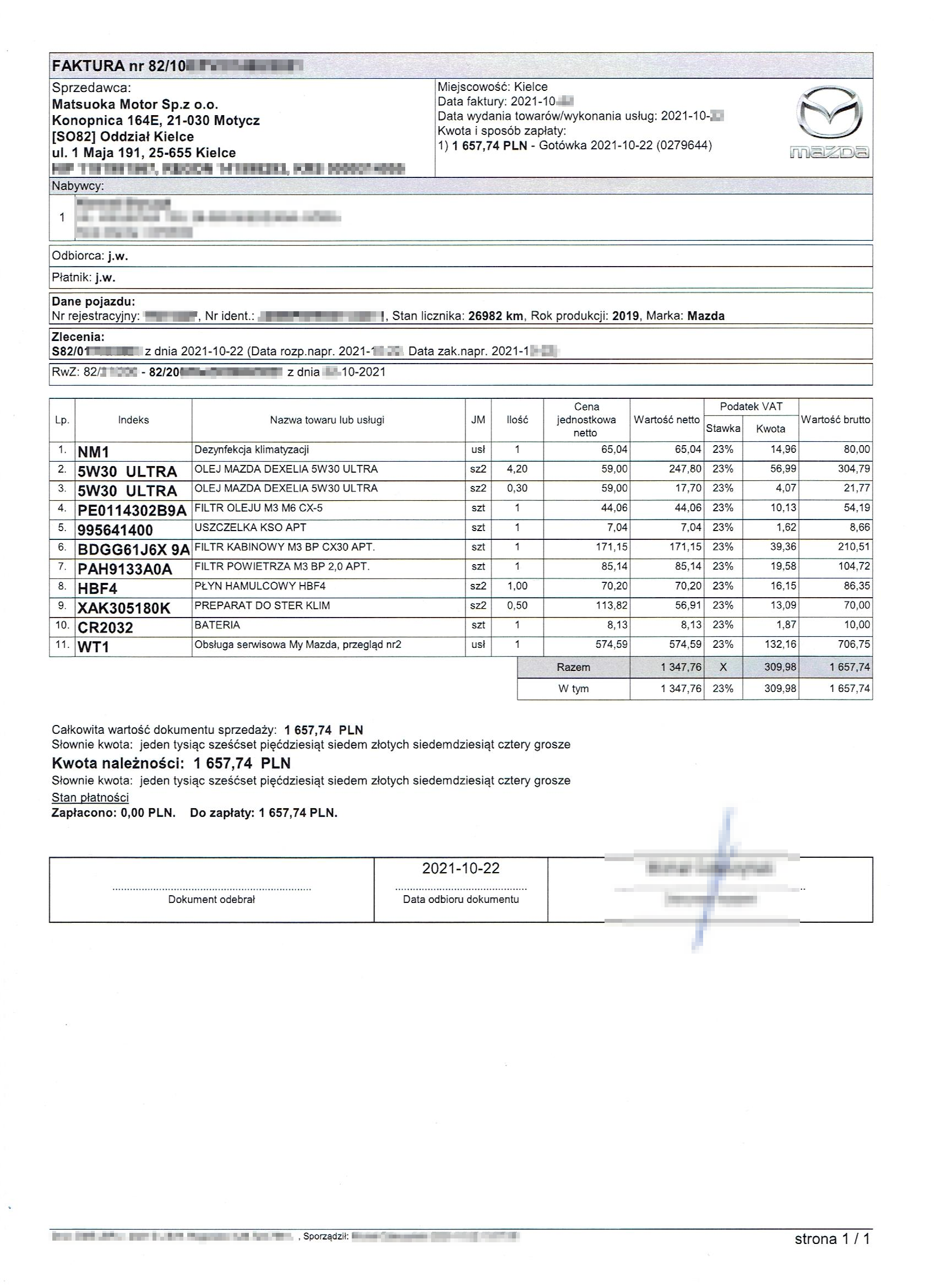 Koszt przeglądu 1290 z własnym olejem, reszta z ASO.