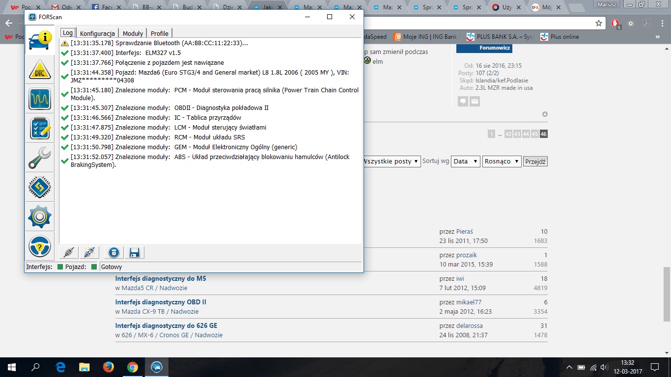 A wiec jestem po i powiem tak udalo się ,tylko znowu wywalilo mi komunikat ze mam klona elm plaga czy co i nici z połączenie ,mam jeszcze jednego elm bodajze 1.4v kupiony zaraz po zakupie mazdy i tamtym zczytywalem nie tylko swoja mazde ,takze zobaczymy o co chodzi z tym komunikatem, jak wywali na tamtym to cos z tym forscanem nie tak