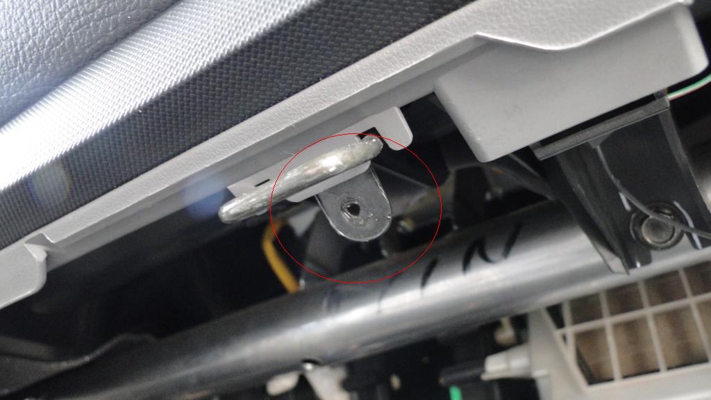 Orientuje się ktoś co powinno być w miejscu oznaczonym na poniższym zdjęciu. Jest to zaraz za uchem zamka schowka pasażera.