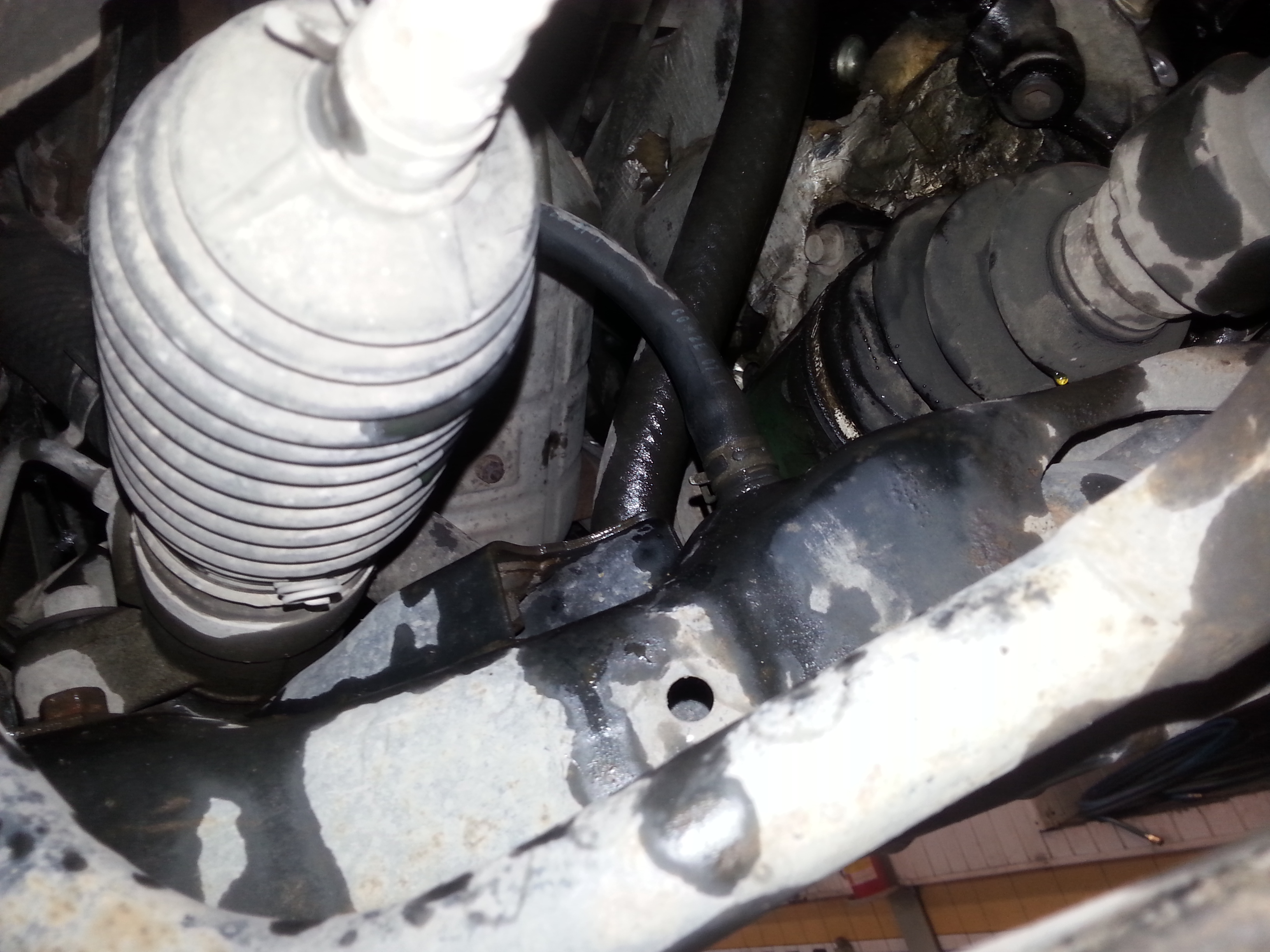 Mam samochód na podnośniku z okazji wymiany rozrządu. Już jakiś czas zastanawiam się od czego jest ten wąż na zdjęciach. Wychodzi z kołyski i nie mogę znlaleźć miejsca gdzie ma być wpięty??