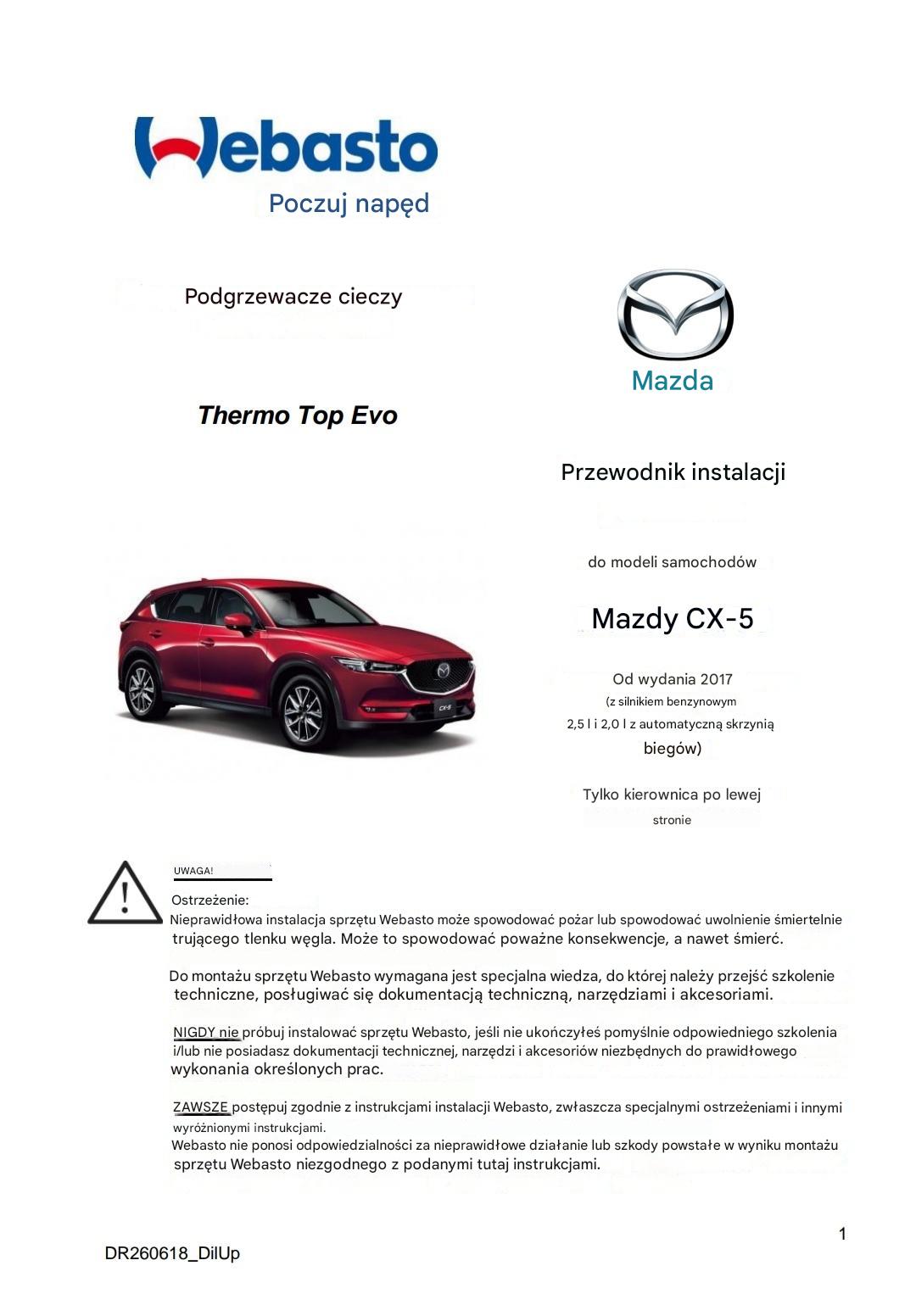 Pytałem czy ktoś montował Webasto do Mazdy cx-5 KF