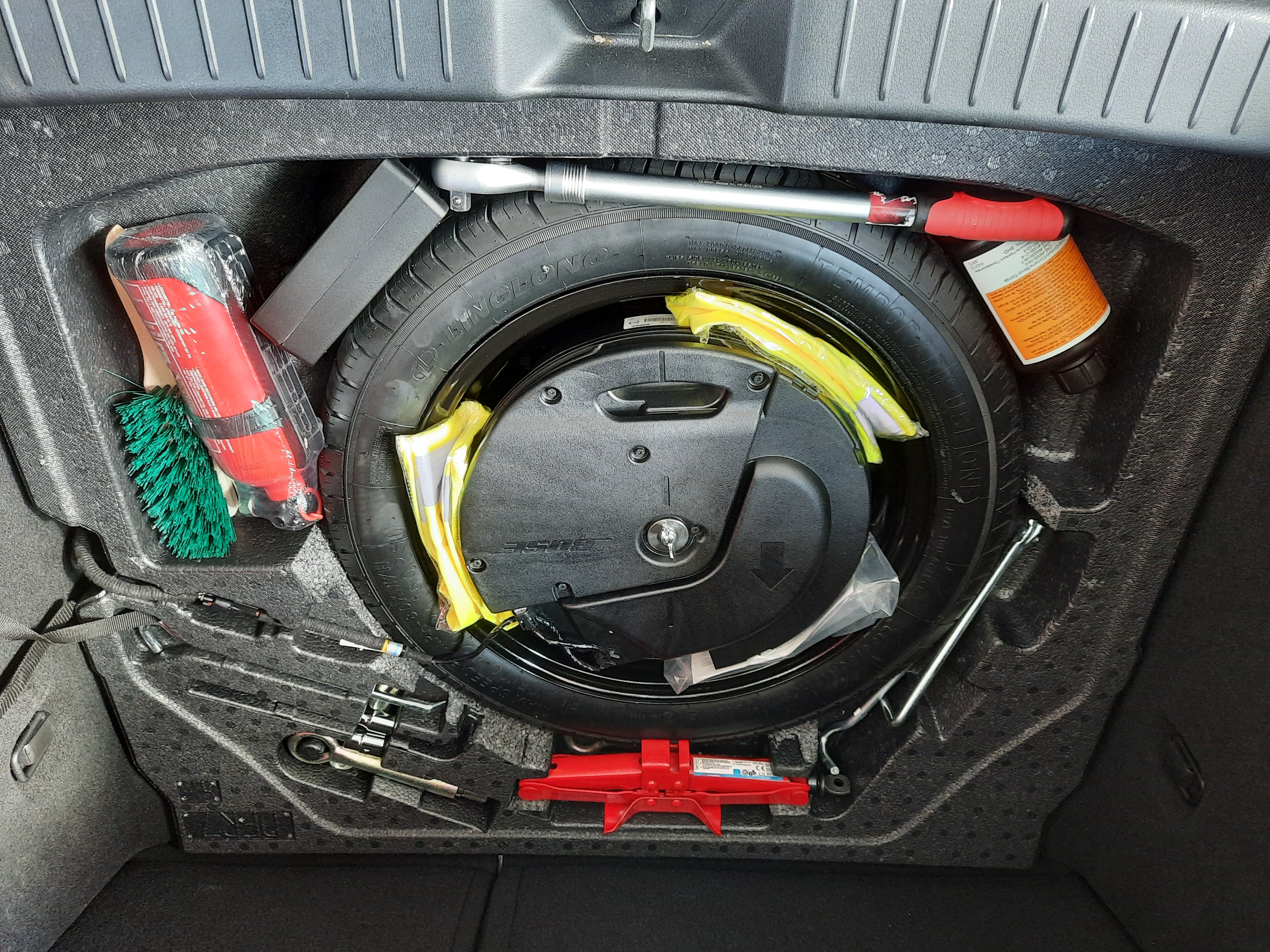 Ten cały ekwipunek z kluczem dynamometrycznym (z wyłączeniem gaśnicy i szczoty do odśnieżania) to standardowe wyposażenie opcji z kołem dojazdowym?