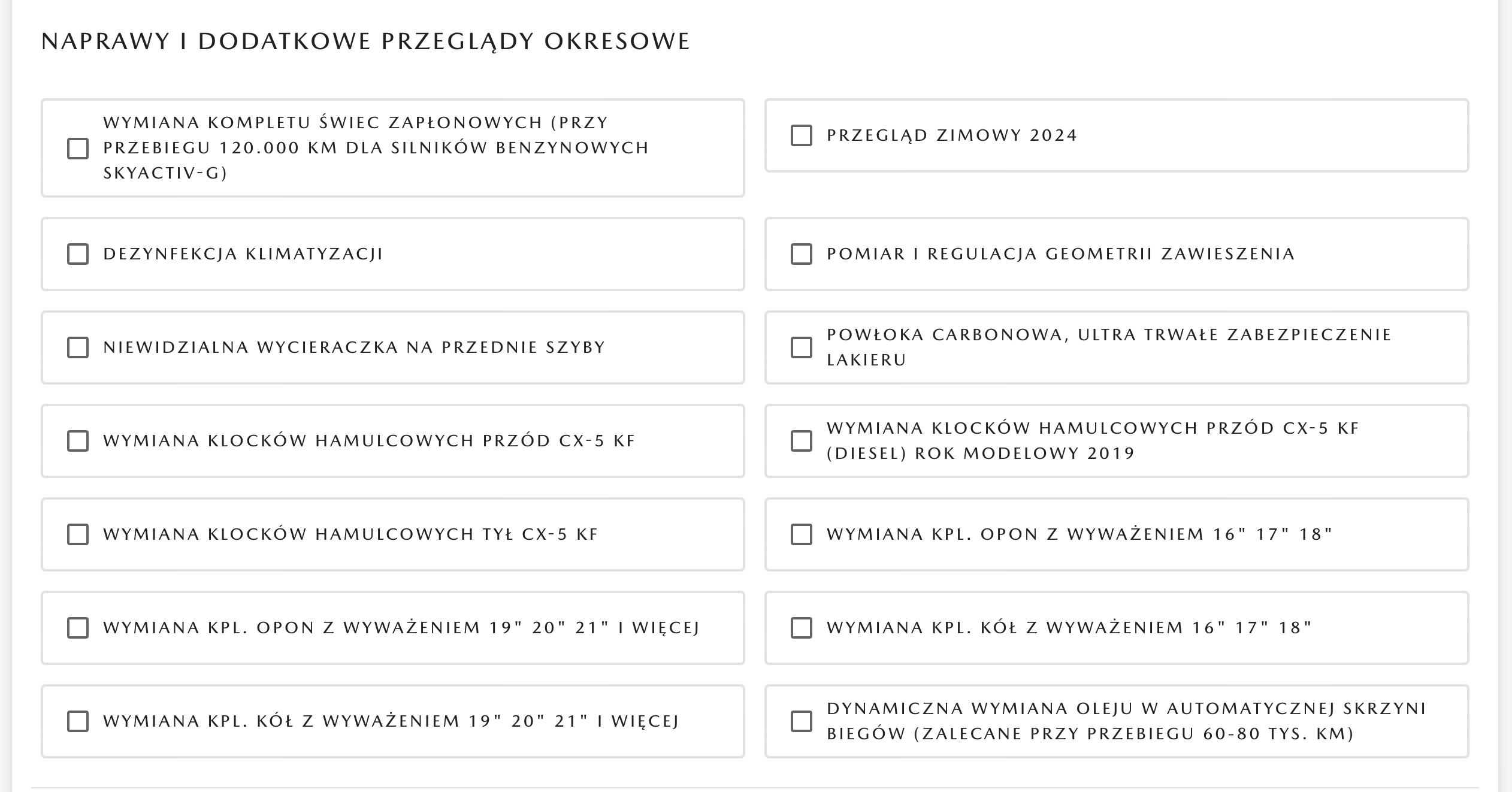 Tam wprowadzając dealerów możesz zobaczyć, czy w sekcji NAPRAWY I DODATKOWE PRZEGLĄDY OKRESOWE masz możliwość wybrania dynamicznej wymiany.
